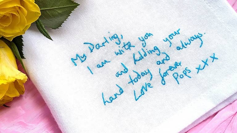 Home of the hand embroidered love note! I create hand embroidered keepsake gifts, from personalised clothing to handwritten message handkerchiefs. Everything is made to order, carefully stitched by hand, and designed to be treasured for years to come.