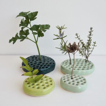 Handmade Blue / Green Ceramic Flower Arrangement Frog