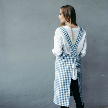 Blue Check Canvas Pinafore Apron For Artist