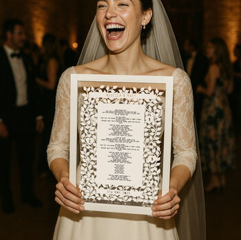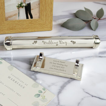 A: We've got tons of personalised options on our marketplace. For example, you can add their wedding date to a print, customise a piece of homeware with their names or engrave their initials onto glassware. The possibilities are endless.