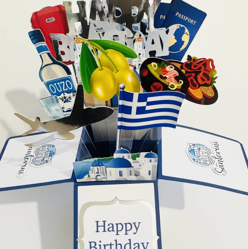 Personalisable Santorini Themed 3D Greeting/Gift Card