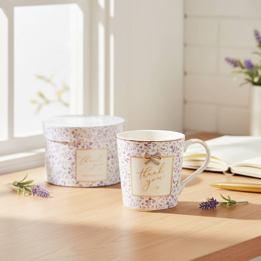 'Thank You' Fine China Coffee Mug In Matching Luxury Gift Box