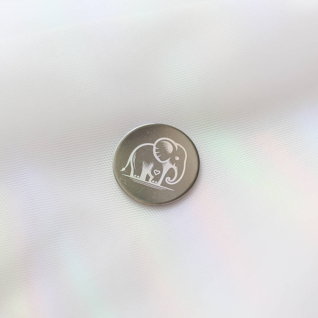 ✦ Elephant engraving – symbol of strength, memory, and loyalty