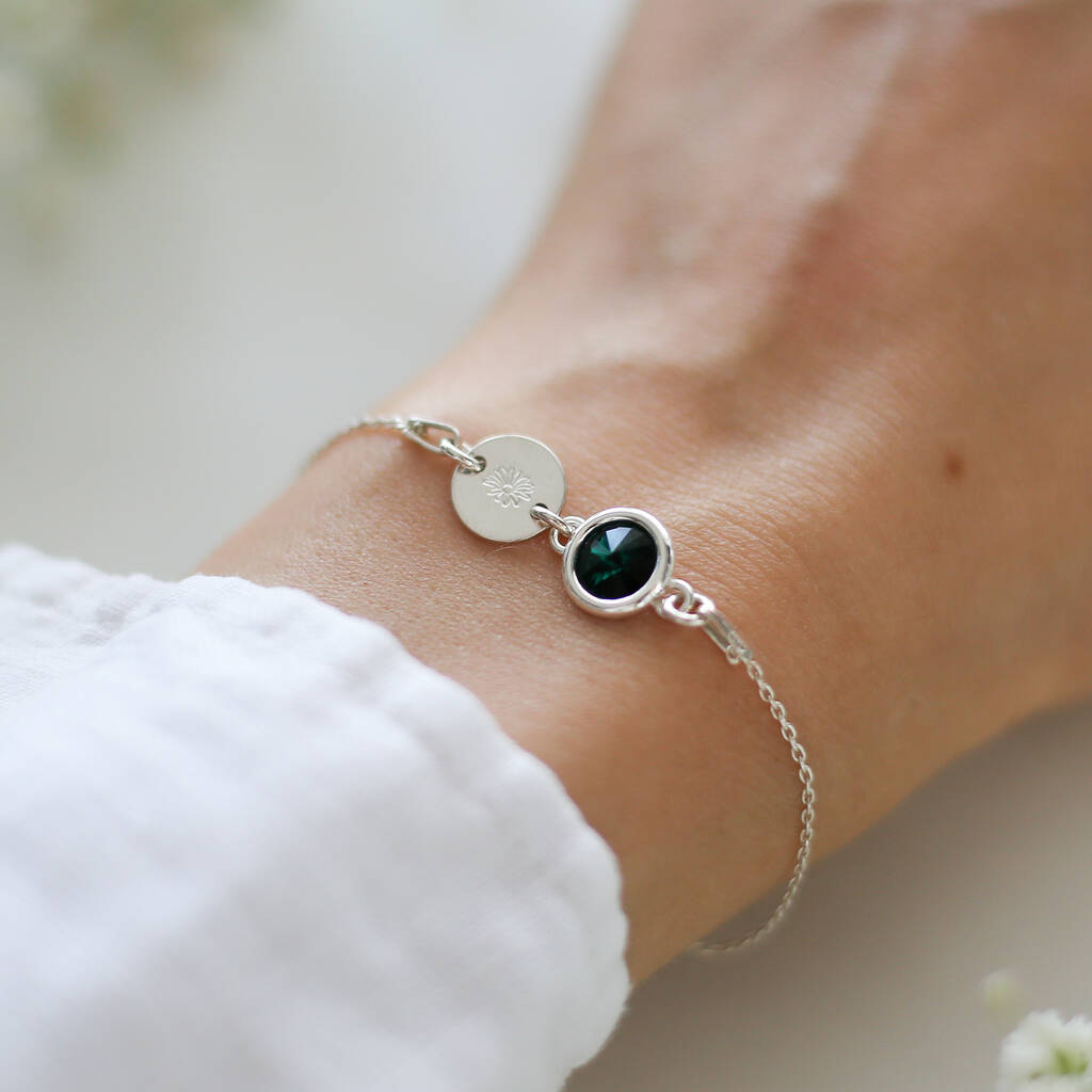 Personalised Birthday Bracelet, Initial And Birthstone Bracelet In Sterling Silver