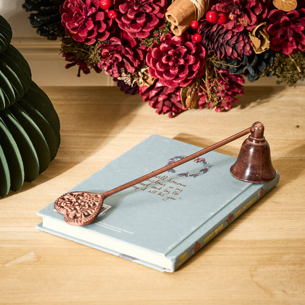 Safely extinguish any candles with this stylish metal extinguisher. Featuring a jointed, moveable bell shaped cup that will comfortably cover the flame of most pillar, votive and tea light candles.