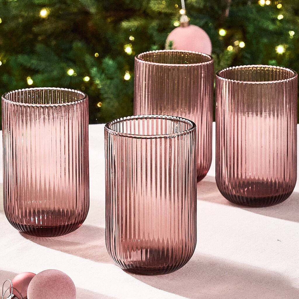 Palermo Set Of Four Amethyst Ribbed Highball Tumblers