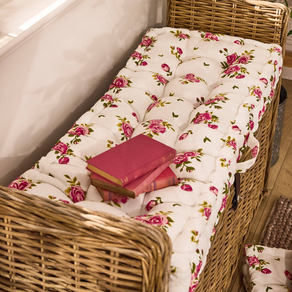 Designed in the UK, the reversible bench pad features a vintage style pattern of pink roses against a fresh white background on one side, with a forest green block colour underneath for a touch of subtle character that's sure to complement any garden furniture.