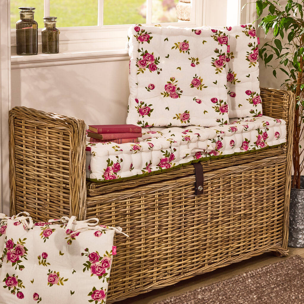 Designed in the UK and decorated with a vintage style pattern of pink roses against a fresh white background, these reversible seat pads are just the thing to brighten up your garden seating.
