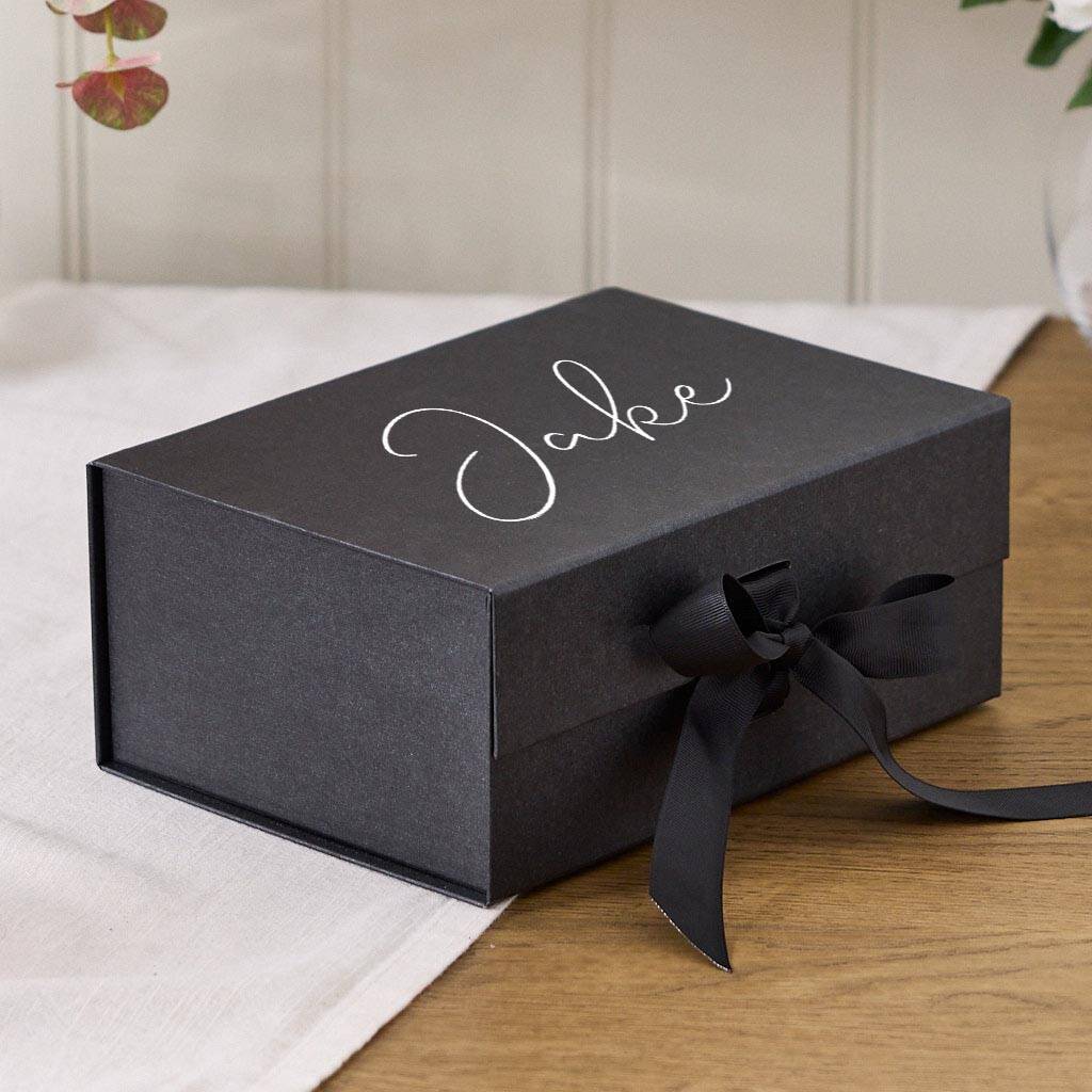 Offering an A5 size in a neutral, yet stylish midnight black colour, our stunning presentation box is lovingly personalised with our bespoke in-house lettering service.