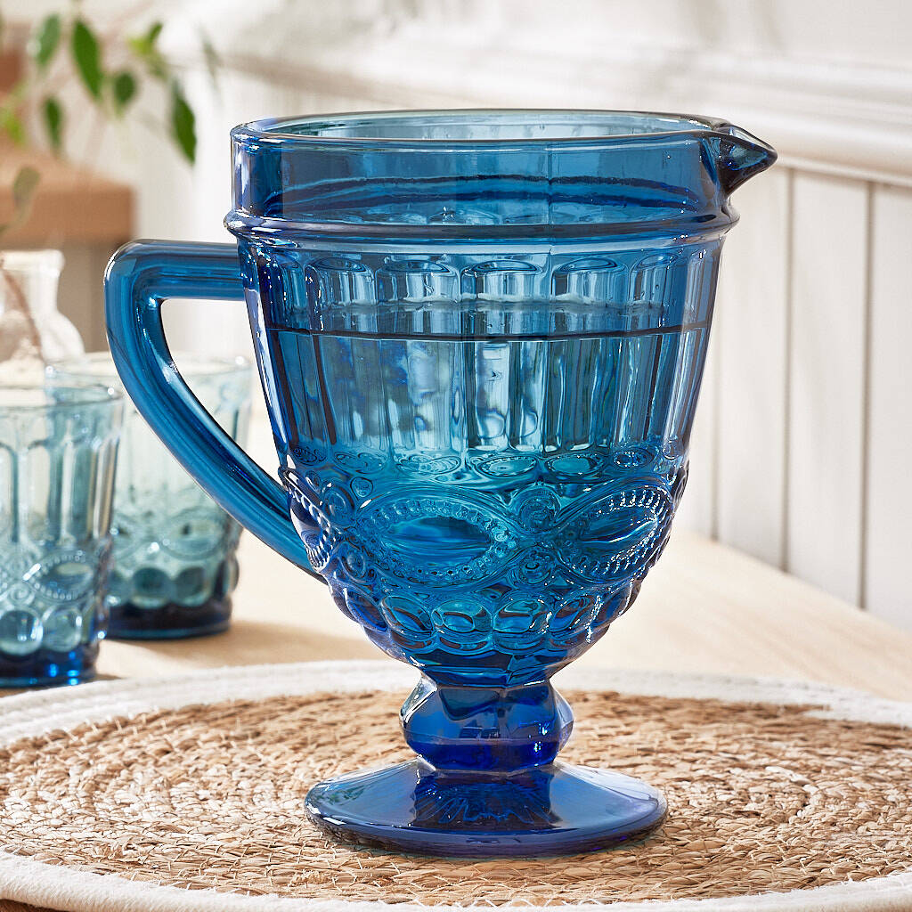 Luxury Sapphire Blue Glass Serving Pitcher