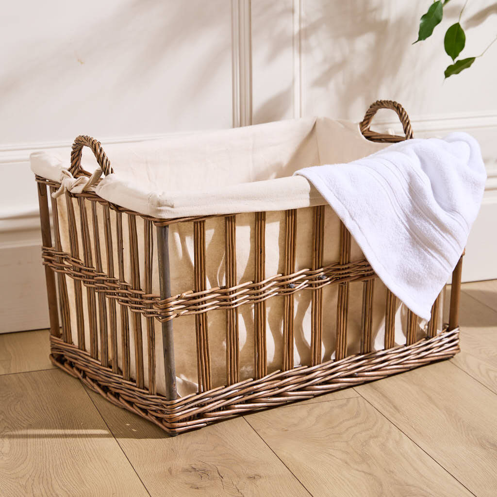 Openwork Wicker Lined Laundry Basket