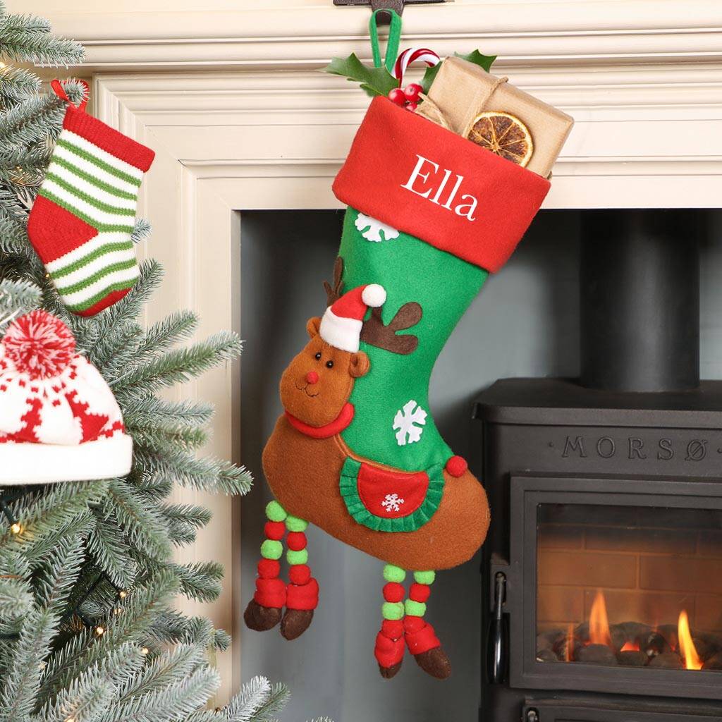 Boys and girls alike are sure to love our novelty reindeer stocking, featuring an adorable 3D design with quirky hanging legs.