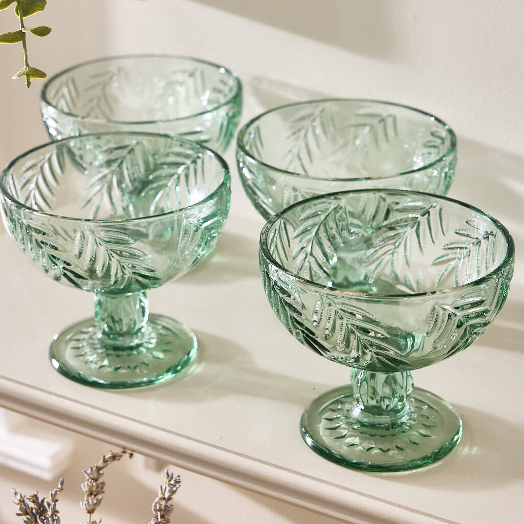 Set Of Four Laurier Green Footed Bowls