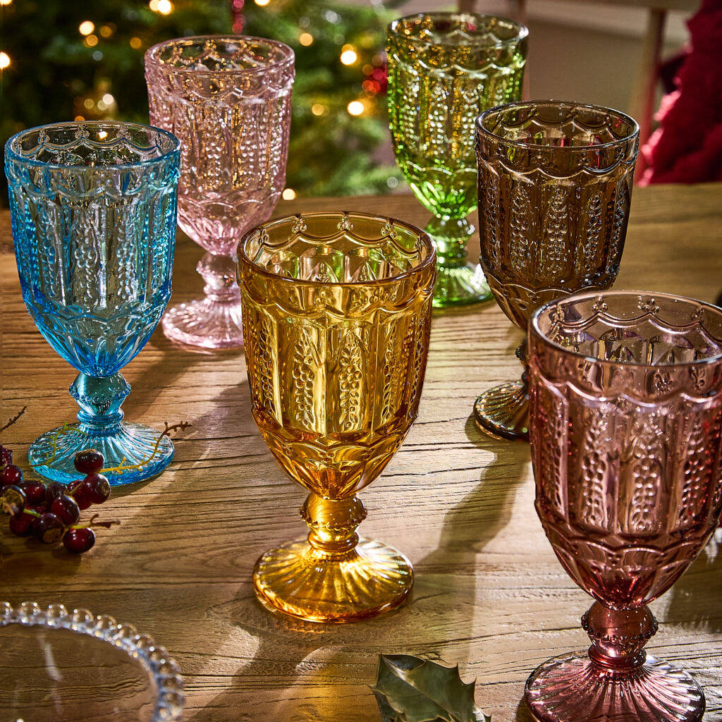 Set Of Six Roselle Coloured Wine Glasses