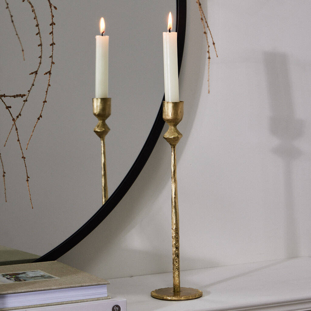 Simple, yet elegant in design, our vintage style candlestick boasts a burnished gold finish that’s deliberately distressed for a touch of antique inspired character.