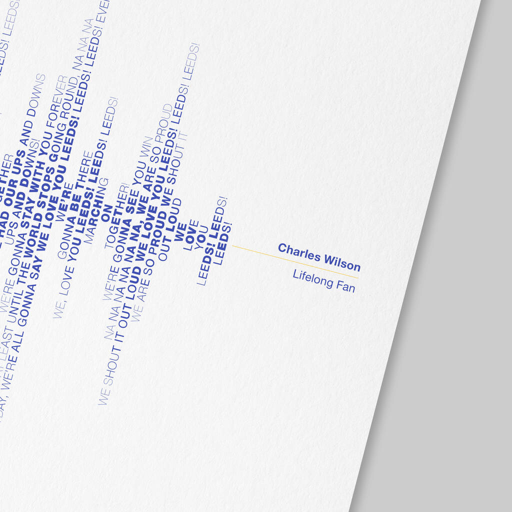 Leeds Football Fan Song Prints, Soundwave Typography Gifts