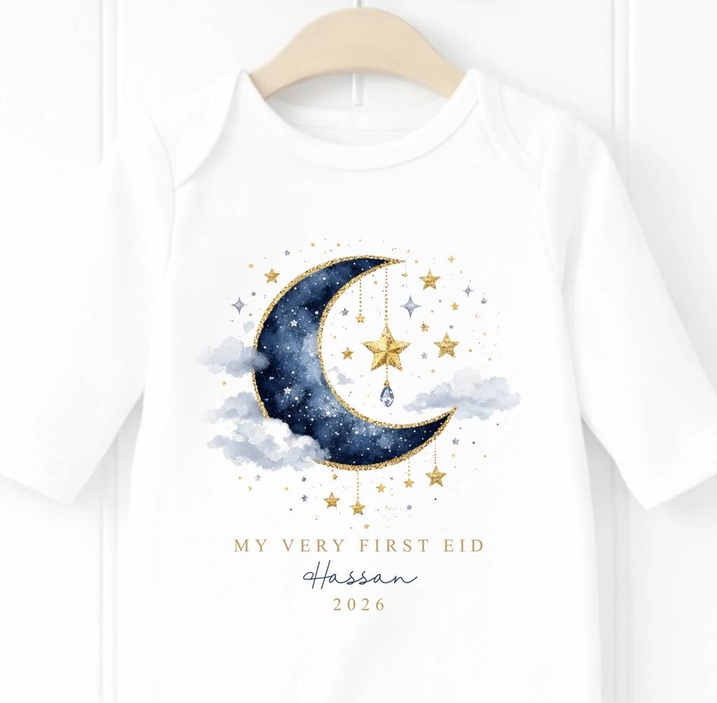 Personalised My Very First Ramadan 2026 Baby Bodysuit, Custom Name Ramadan Onesie, Celestial Moon And Stars Baby Shower Gift