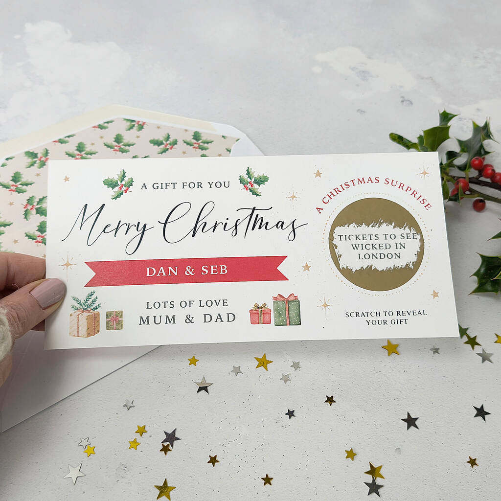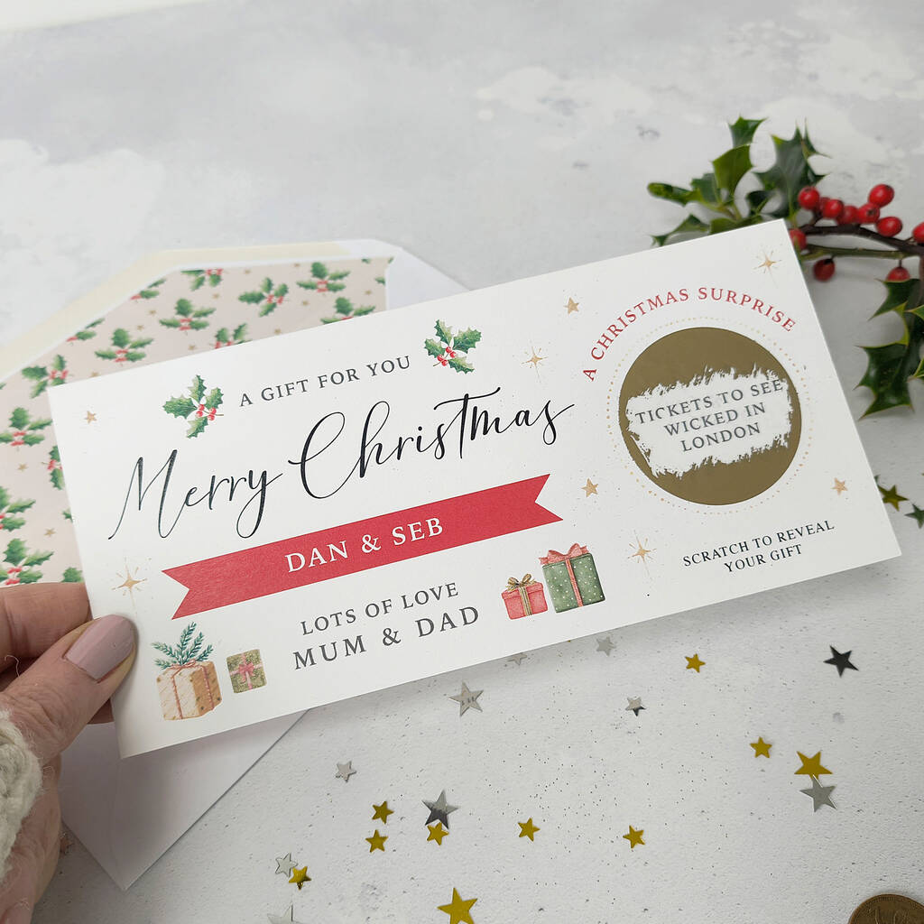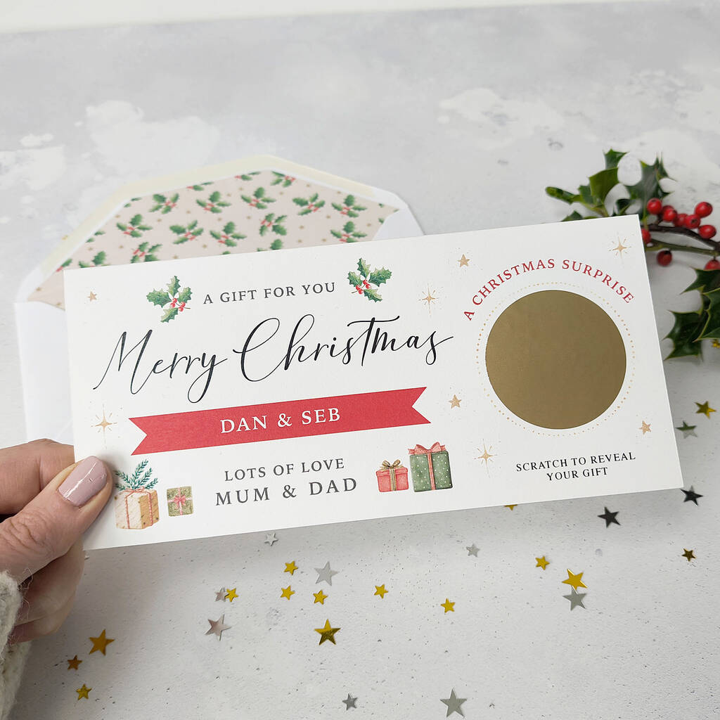 Elevate your present giving moment this Christmas with this stunning personalised scratch card.