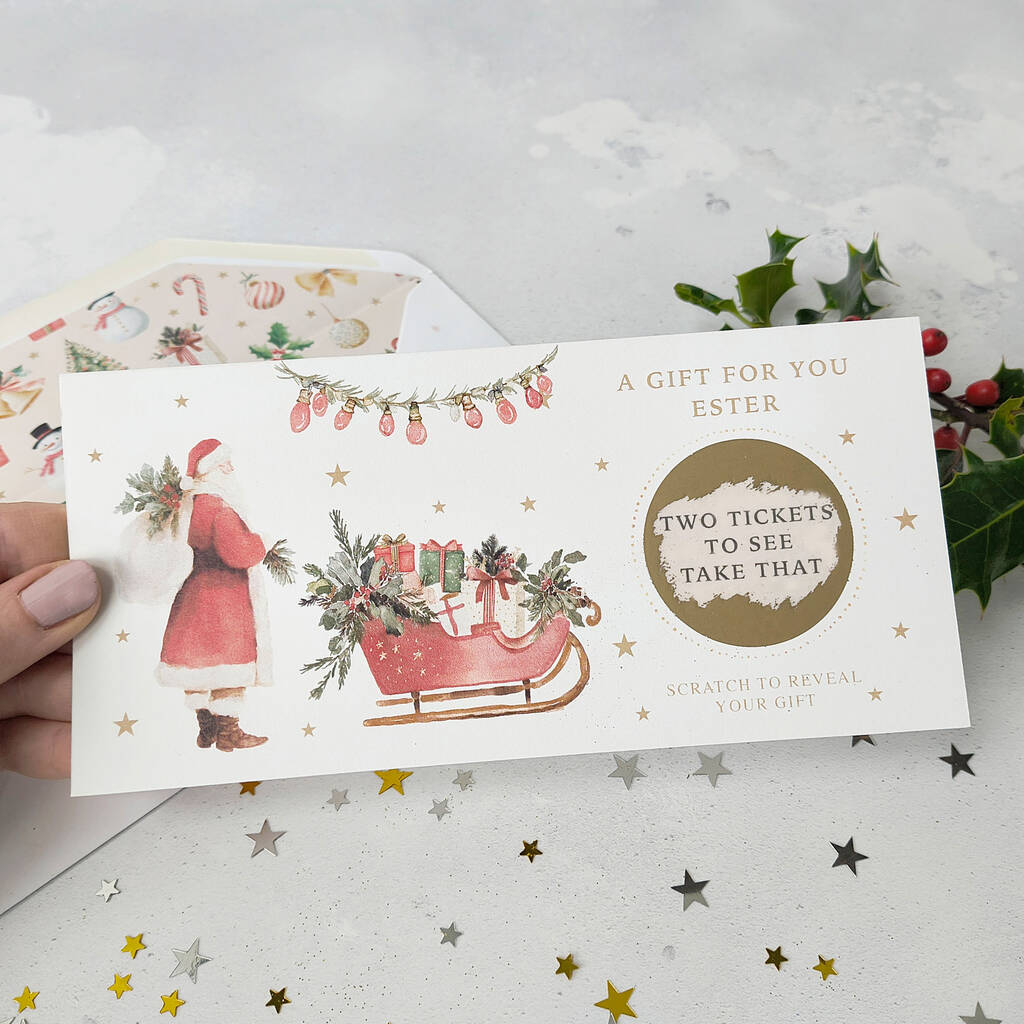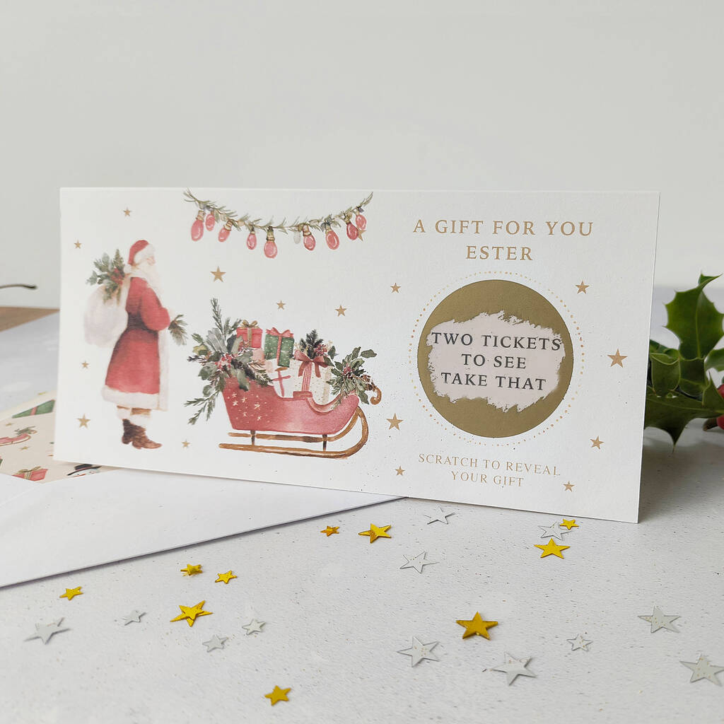 A truly special personalised Christmas scratch card featuring a classic Santa and Sleigh design - the perfect, unique reveal for any surprise gift.
