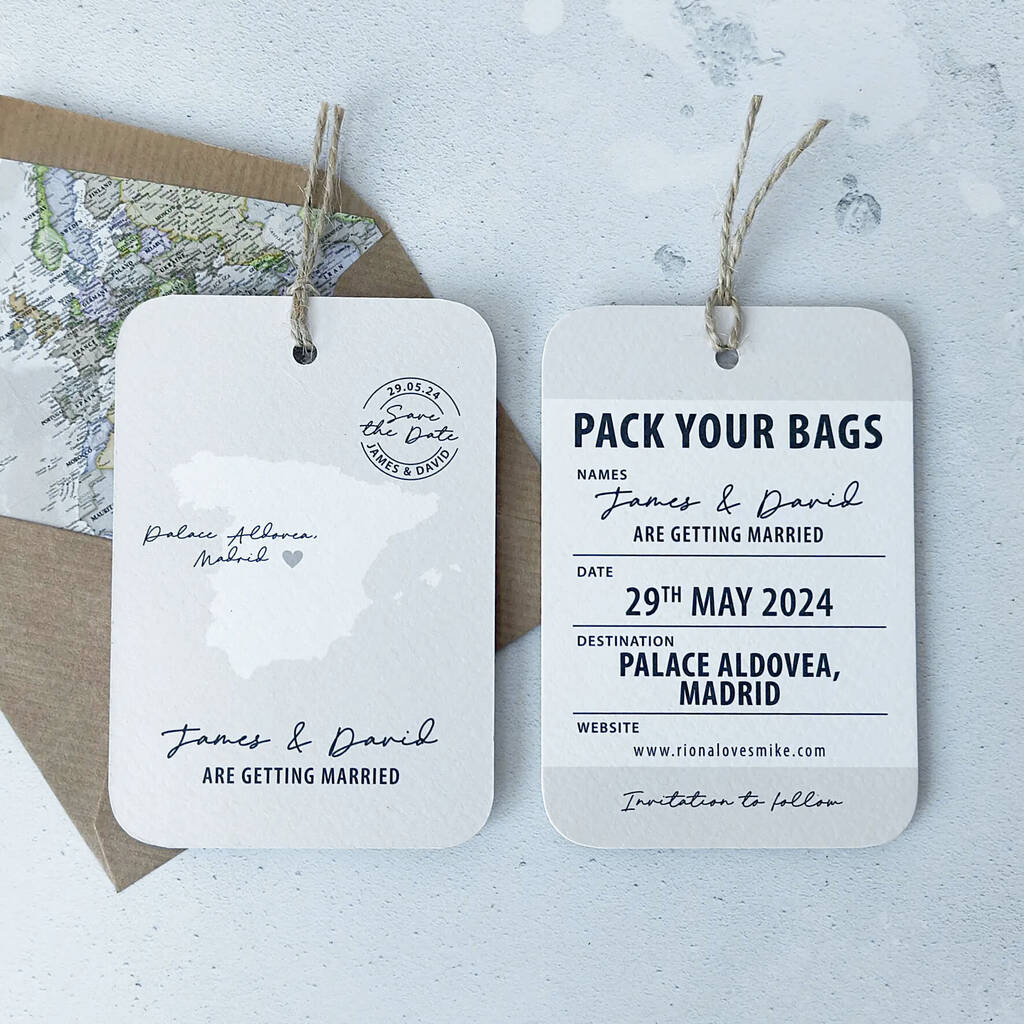 Personalised Destination Wedding Save The Date Map Tag