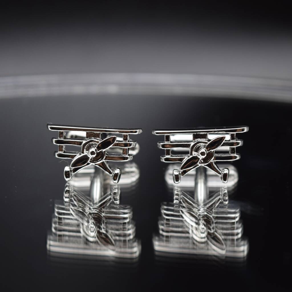 Airplane Silver Cufflinks Gift For Pilots 316 L Stainless Steel Aviation Accessory