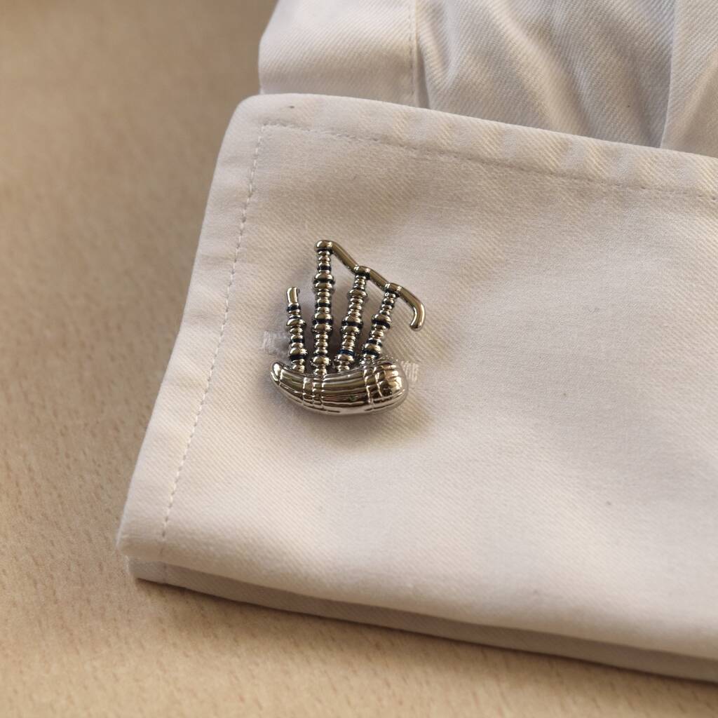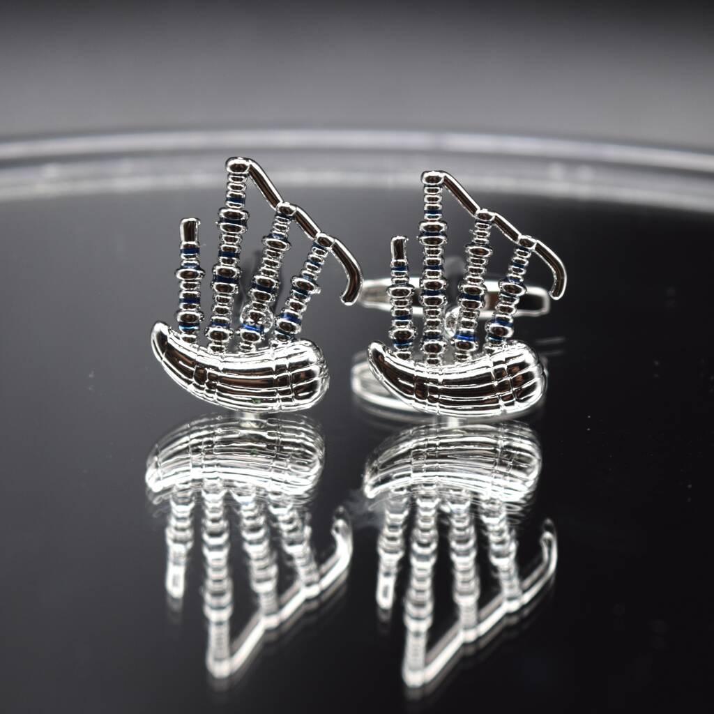 Bagpipe Silver Cufflinks Gift For Musicians 316 L Stainless Steel