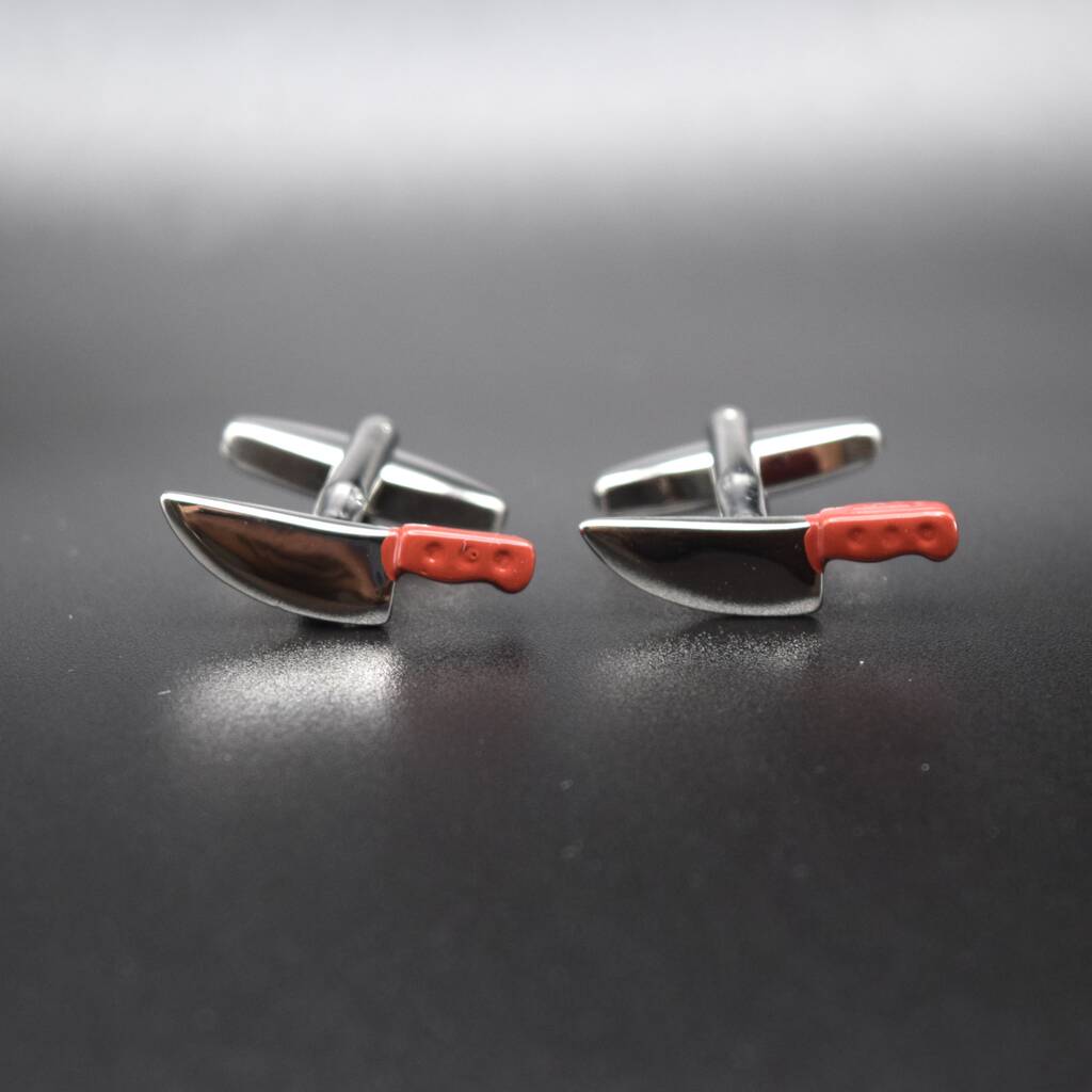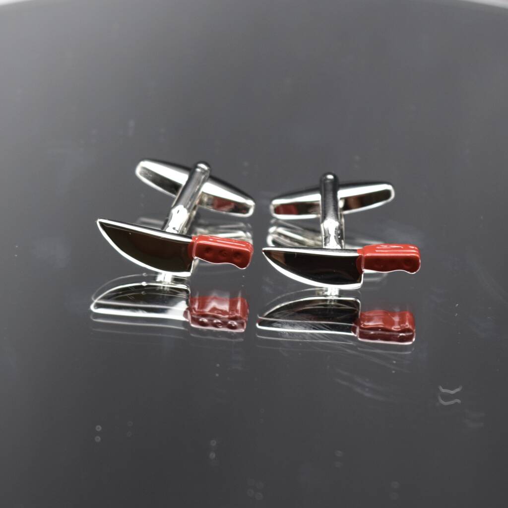 Chef’s Knife Cufflinks Silver And Red Kitchen Gift For Food Lovers And Chefs