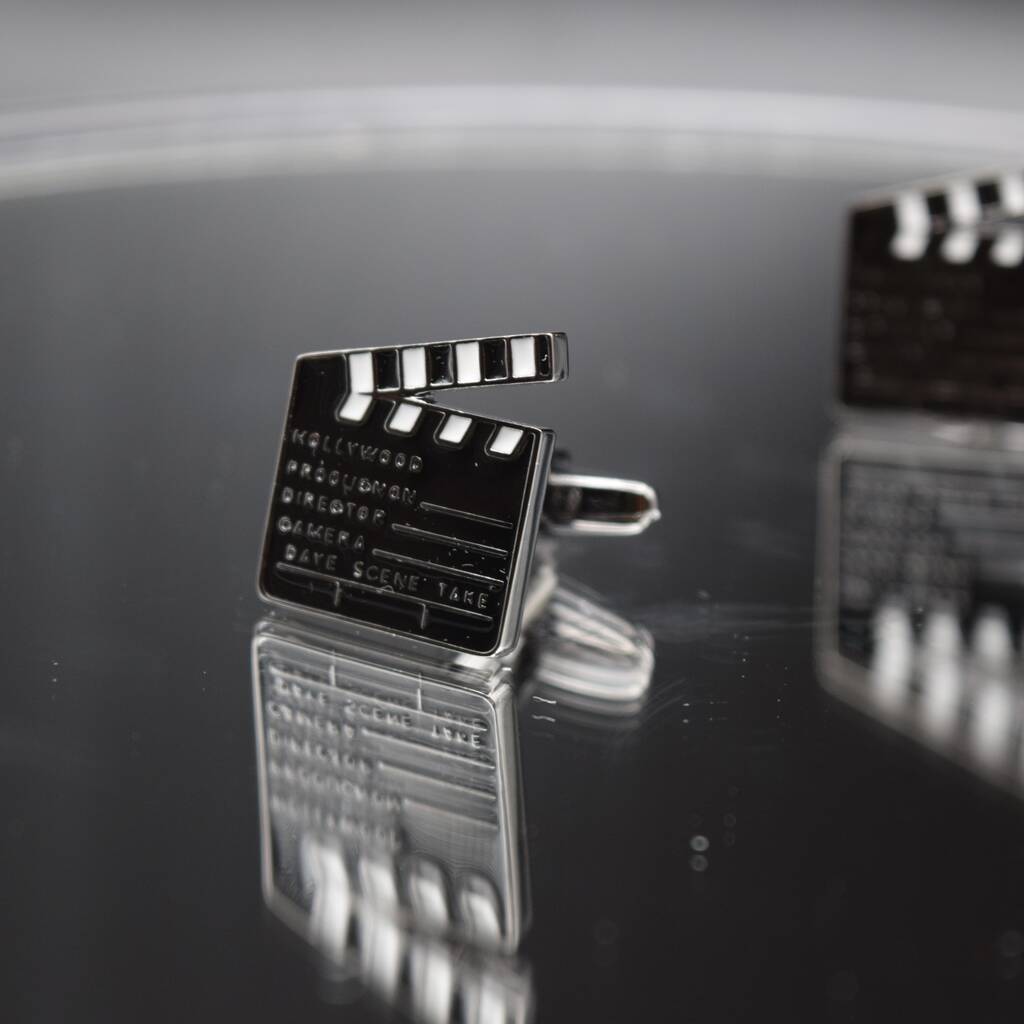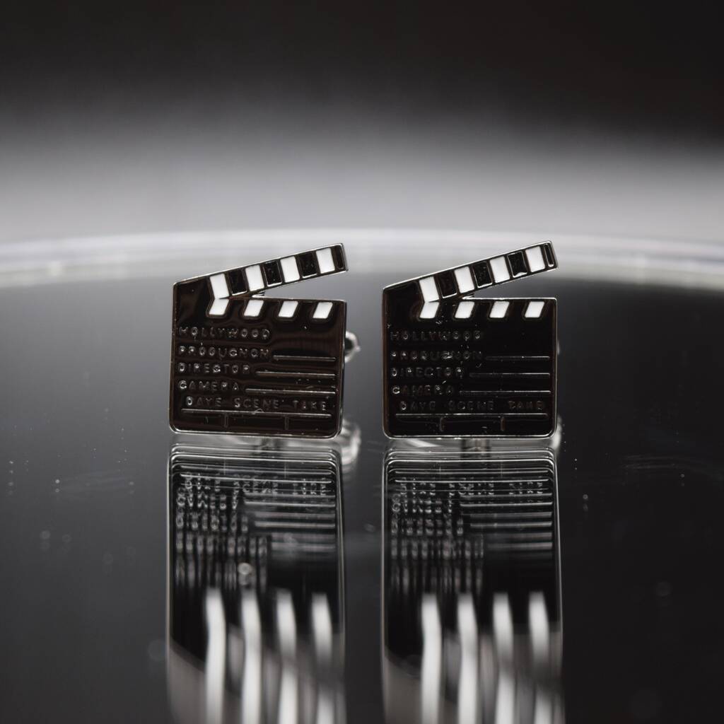 Director’s Clapperboard Cufflinks Silver Film Slate Design Gift For Movie Lovers