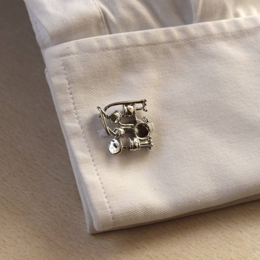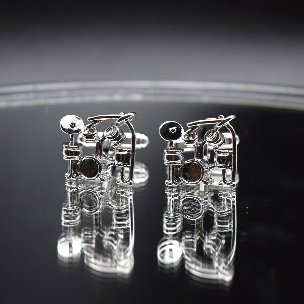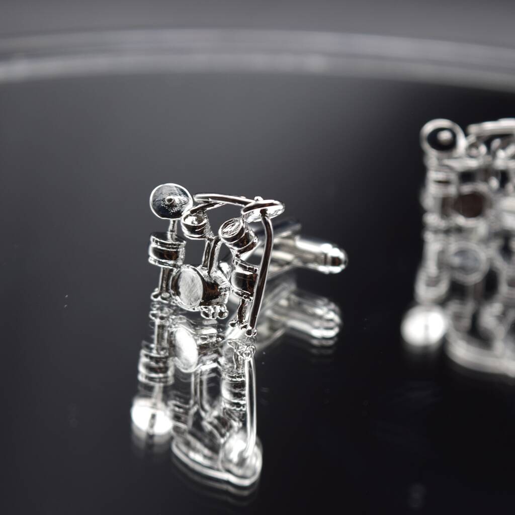Drum Set Silver Cufflinks Gift For Musicians 316 L Stainless Steel