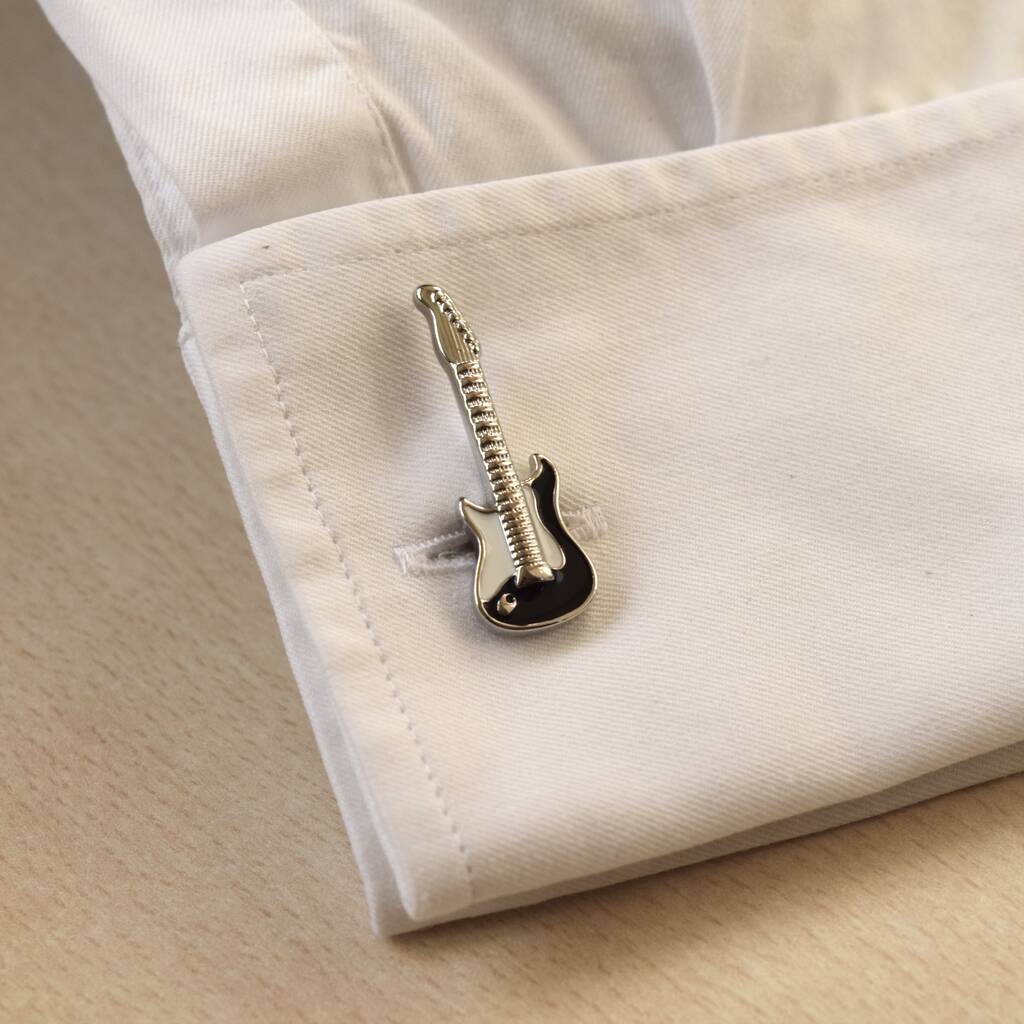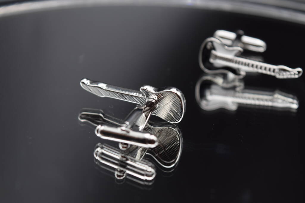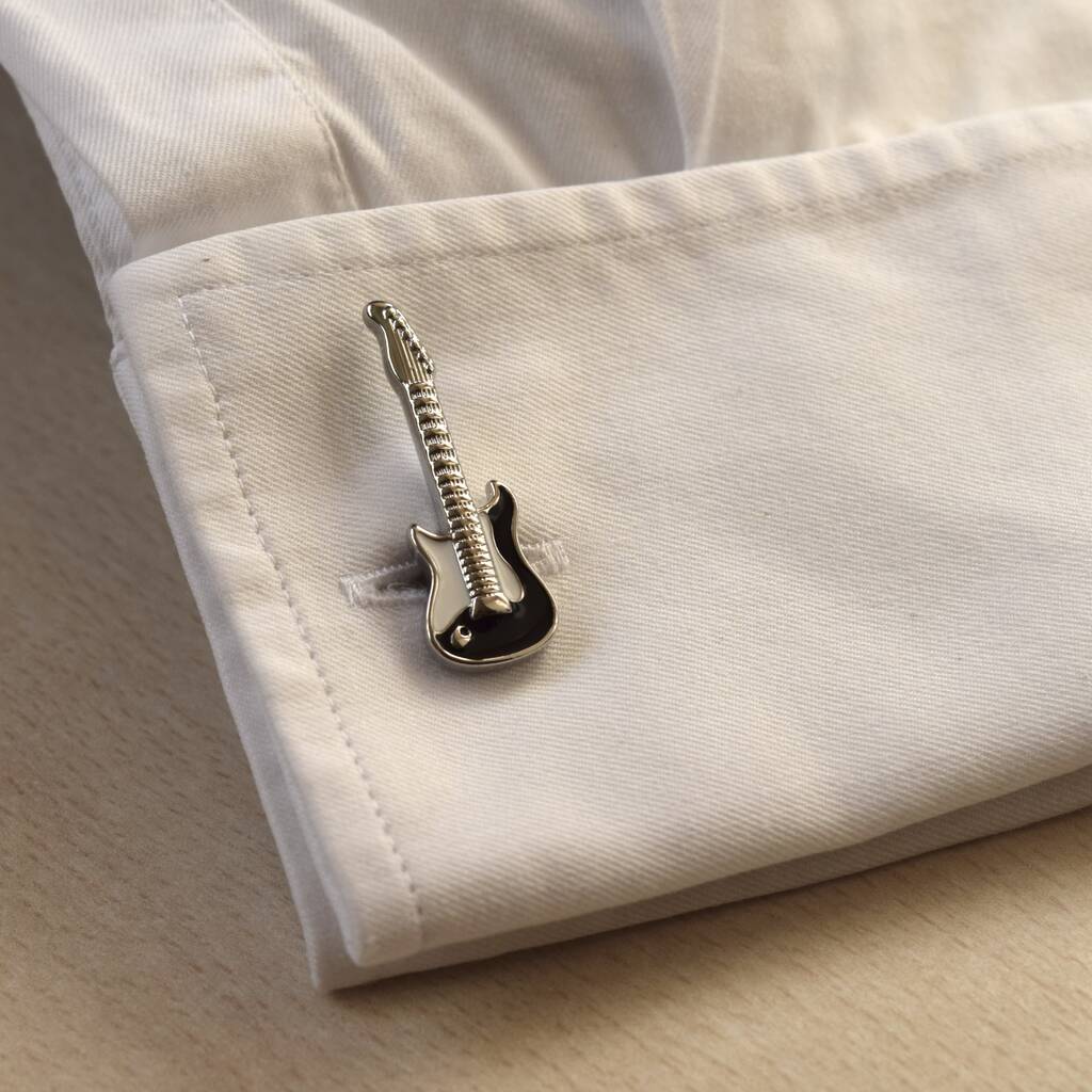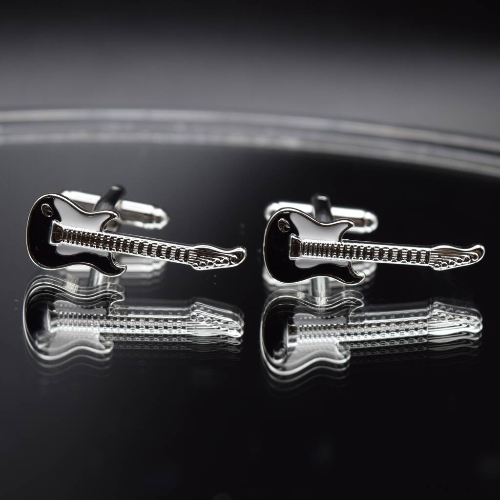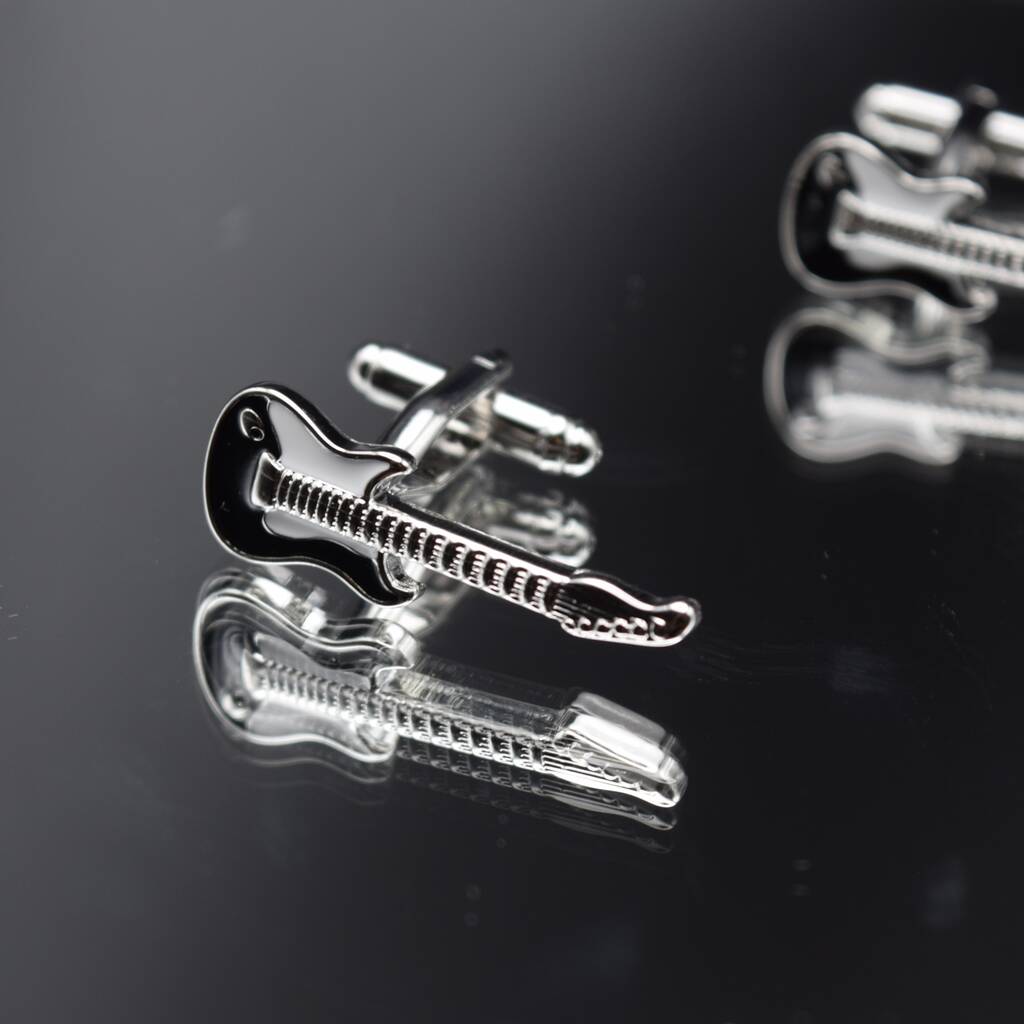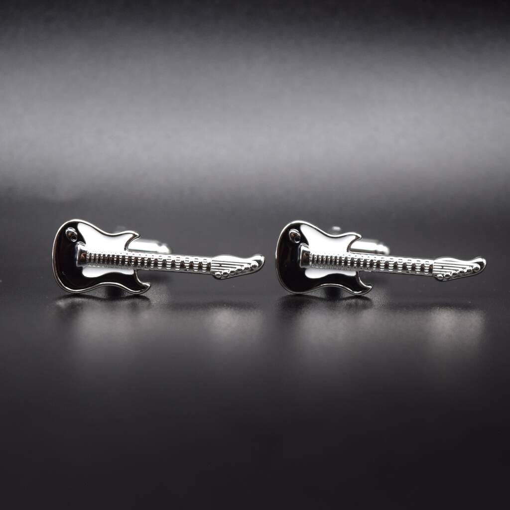 Electric Guitar Silver Cufflinks Gift For Musicians 316 L Stainless Steel Rock Accessory