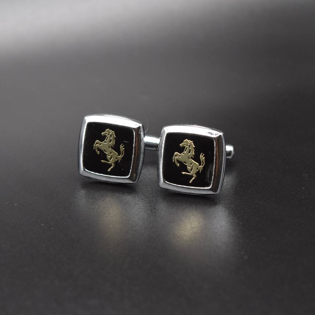 Ferrari Cufflinks Black And Silver Prancing Horse Design Gift For Men