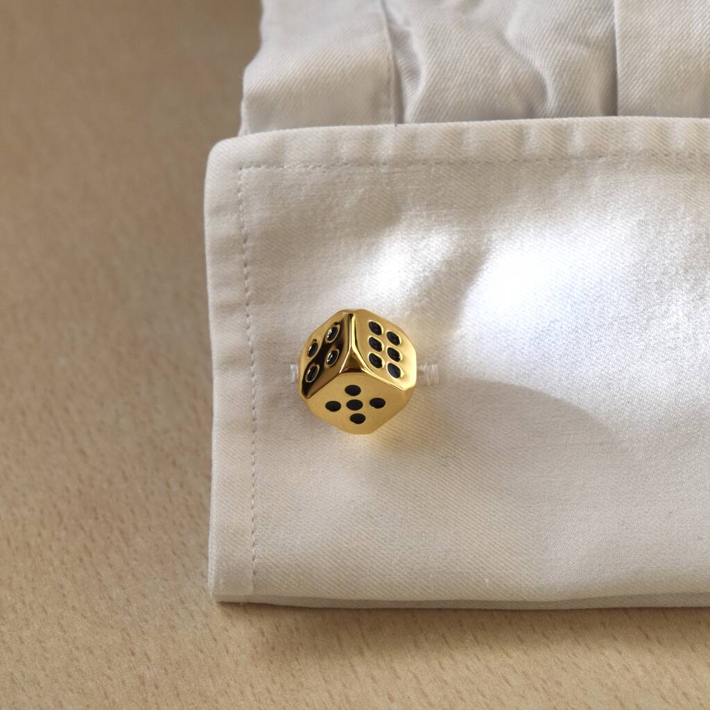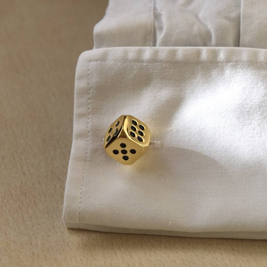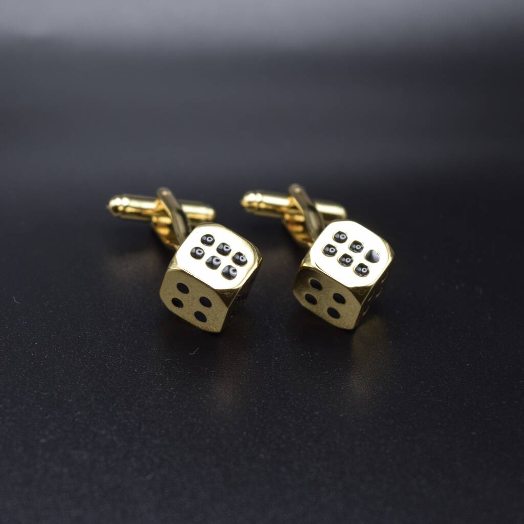 Gold Dice Cufflinks Gift For Men 316 L Stainless Steel Casino Accessory