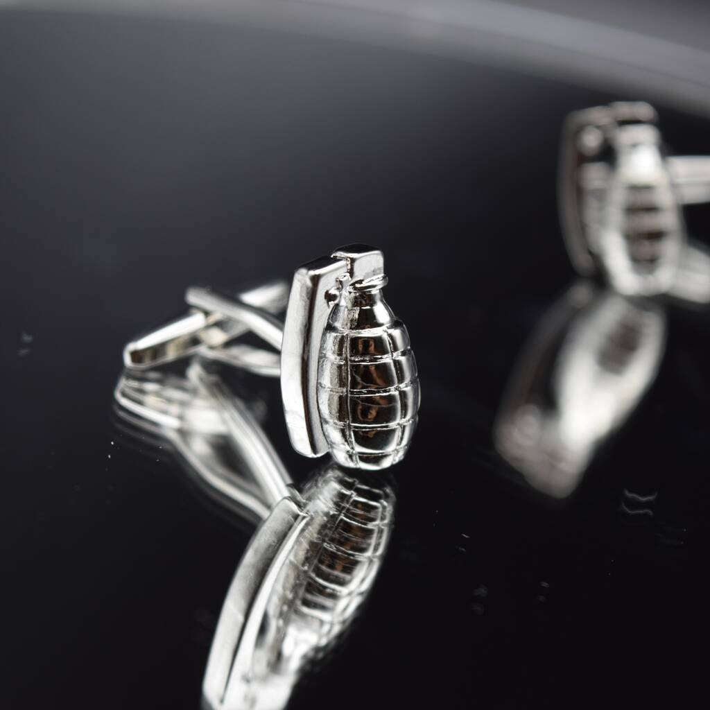 Grenade Cufflinks Silver Statement Gift For Men Bold And Cool Design