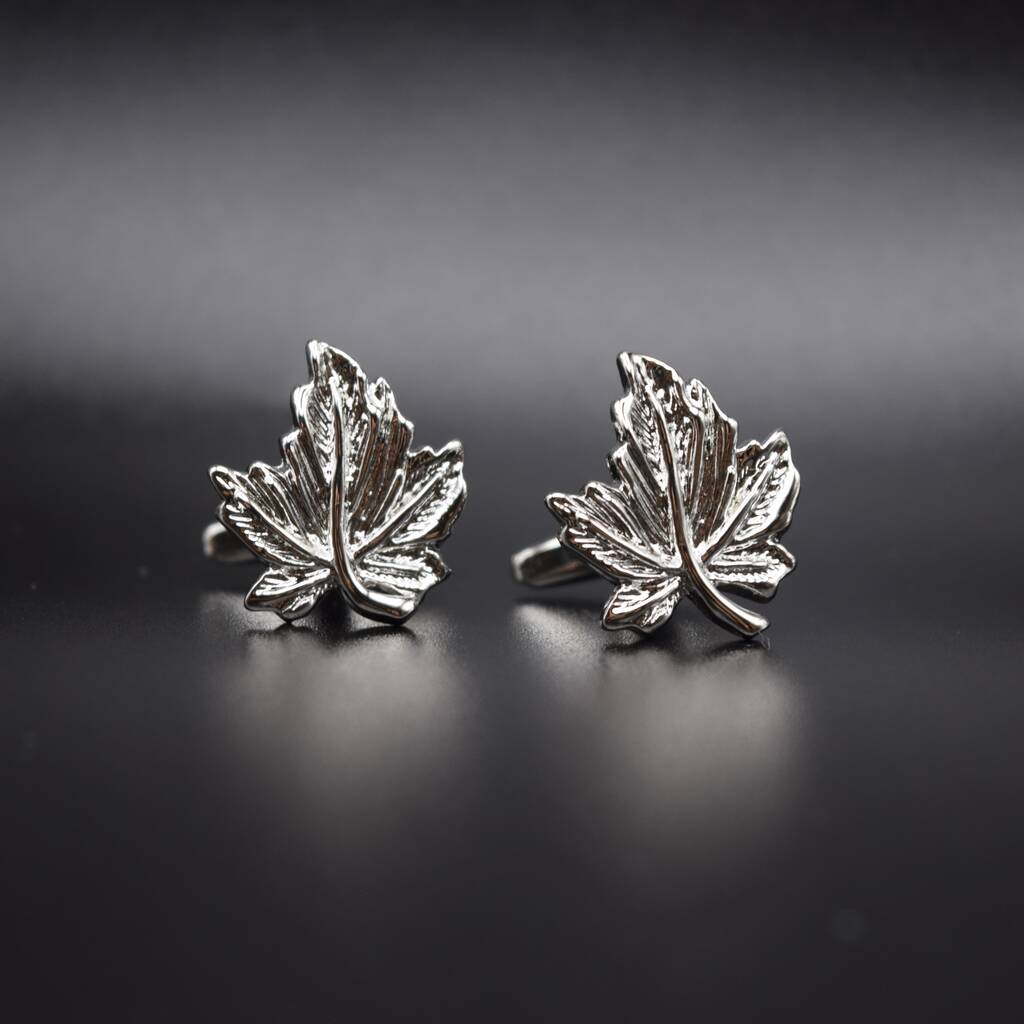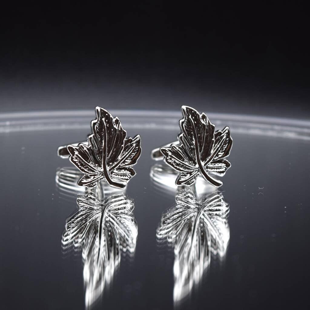 Maple Leaf Silver Cufflinks Gift For Men 316 L Stainless Steel Nature Inspired Accessory