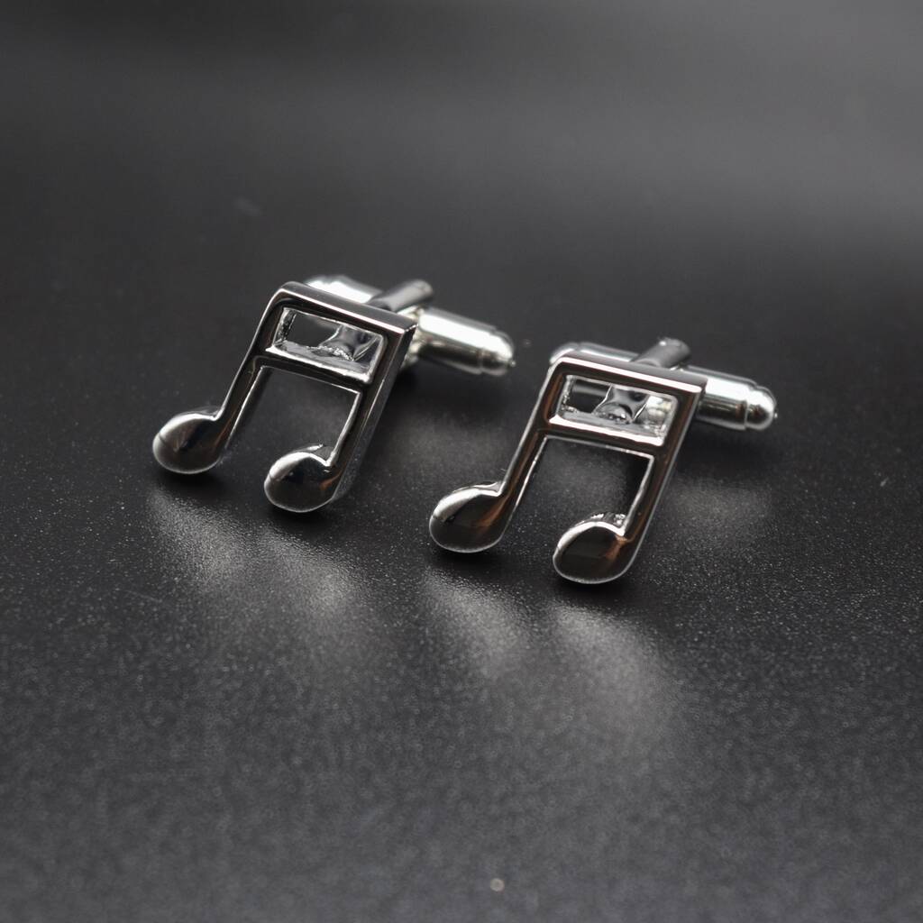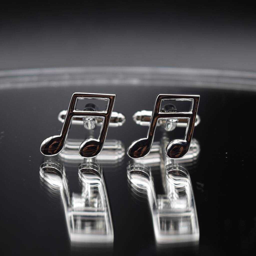 Music Note Silver Cufflinks Gift For Musicians 316 L Stainless Steel