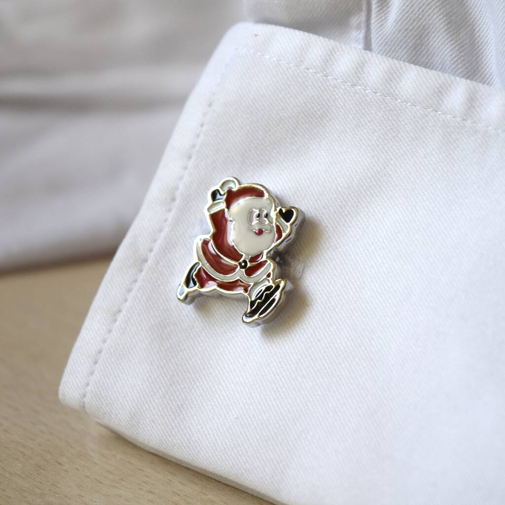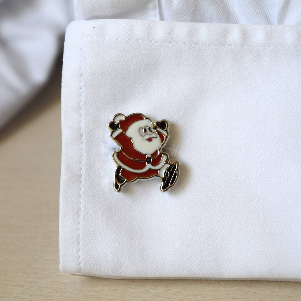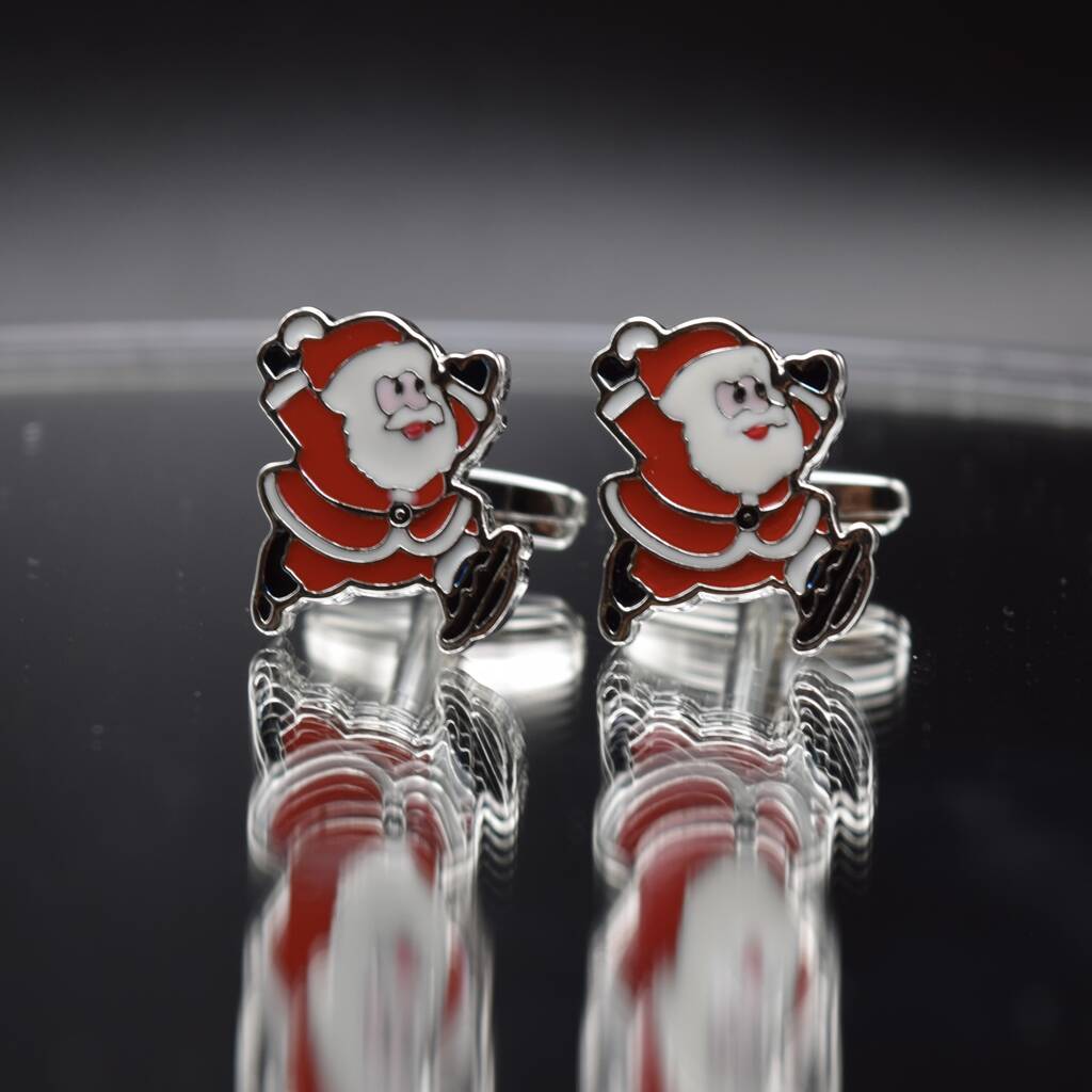 Santa Claus Cufflinks Christmas Gift For Him Festive Red And Silver Design