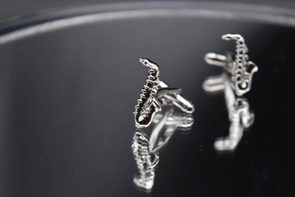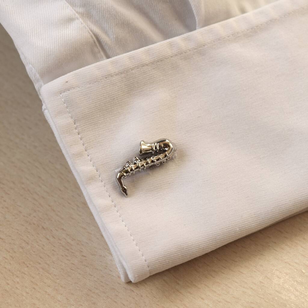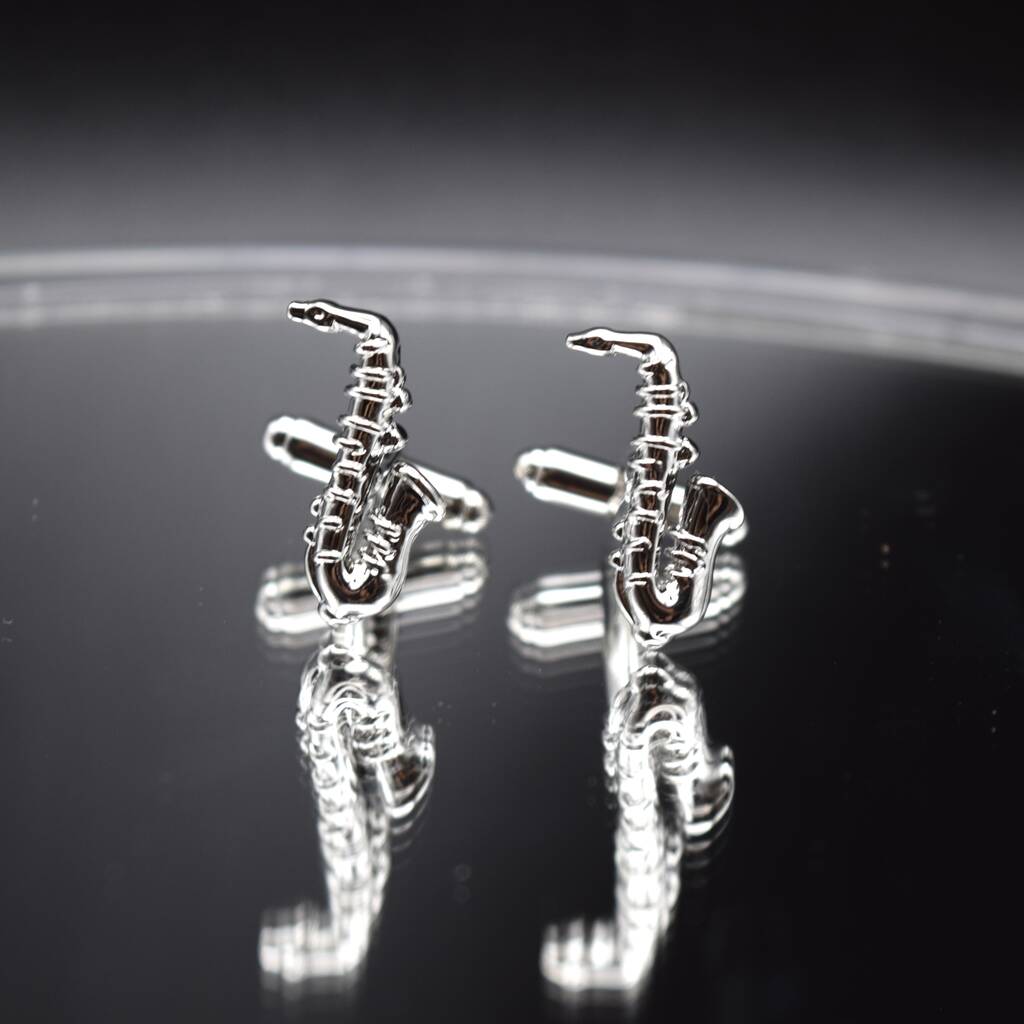 Saxophone Silver Cufflinks Gift For Musicians 316 L Stainless Steel Accessory