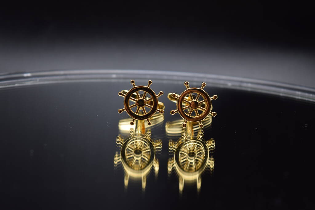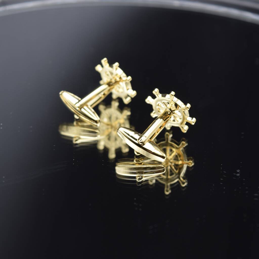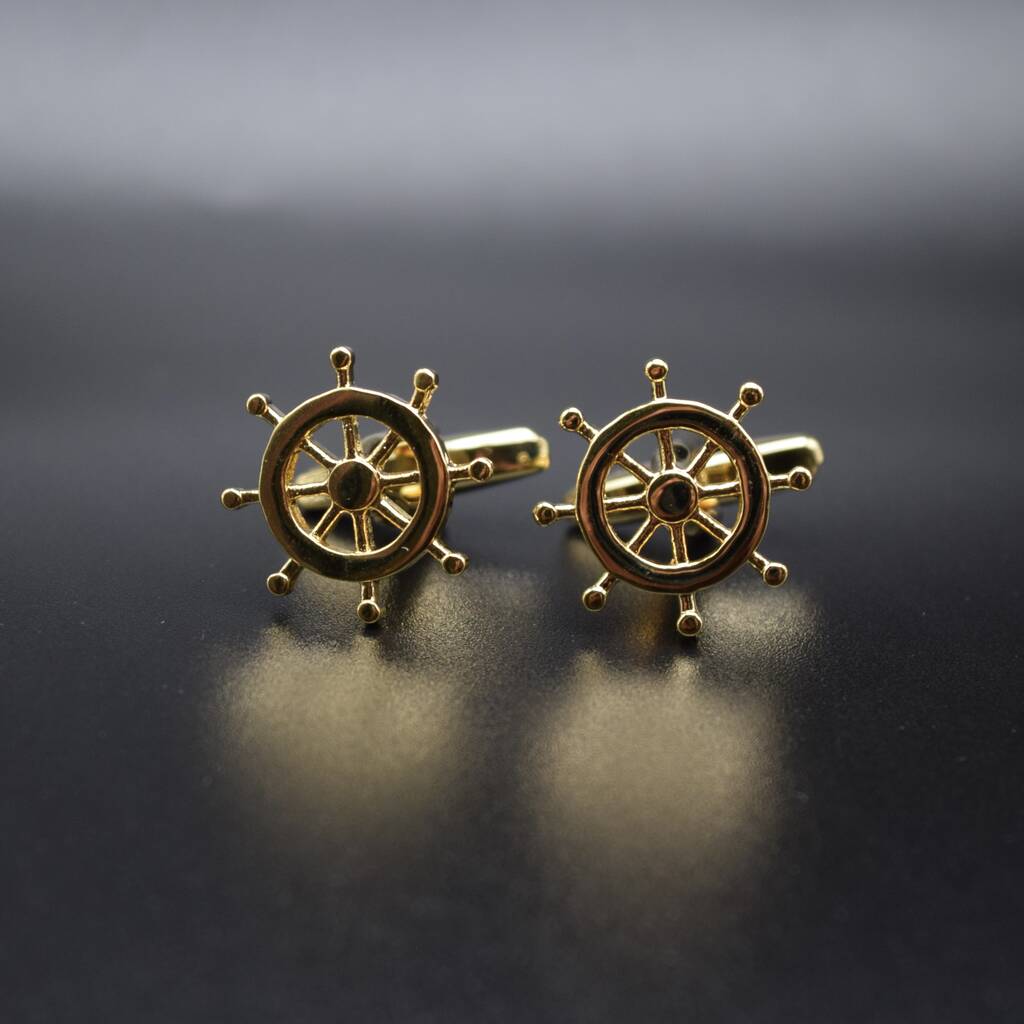 Ship Wheel Gold Cufflinks Gift For Men 316 L Stainless Steel Nautical Accessory