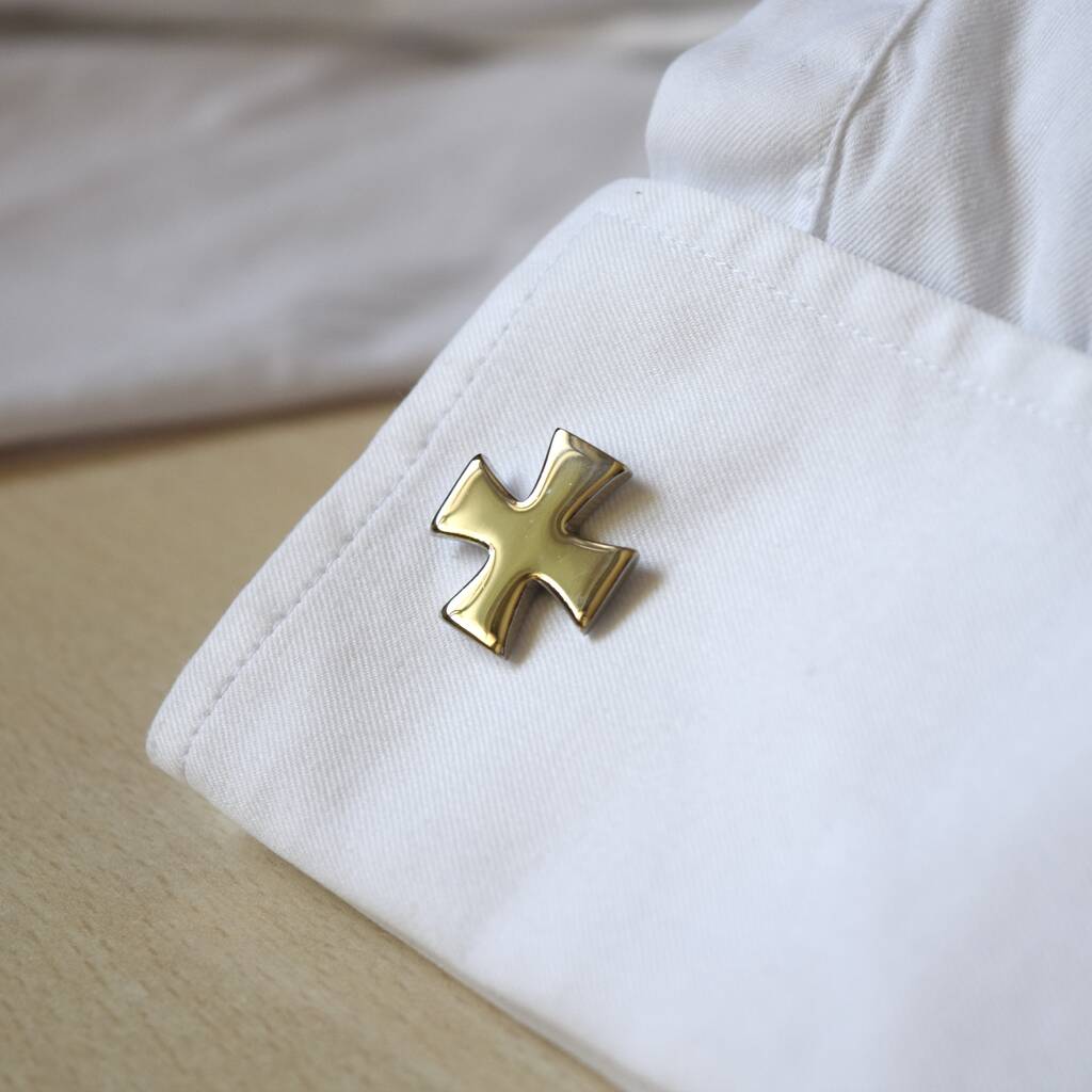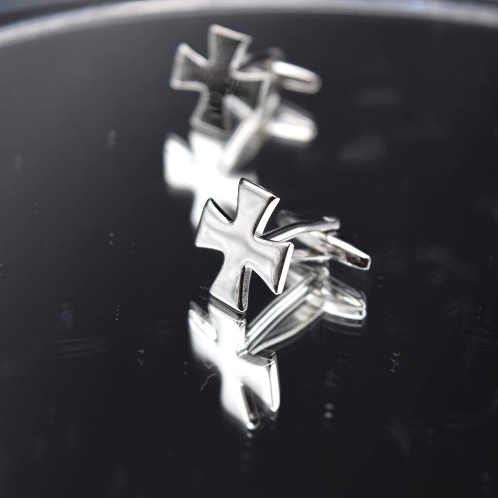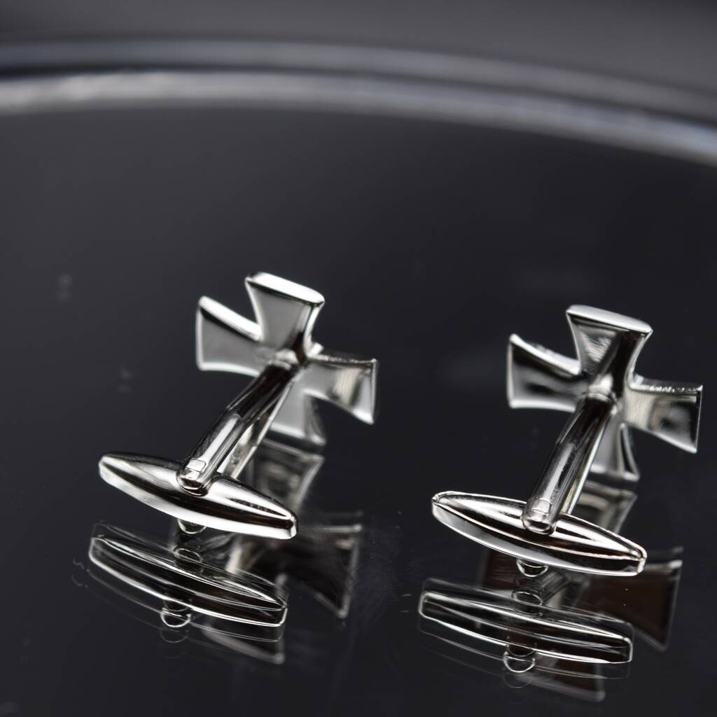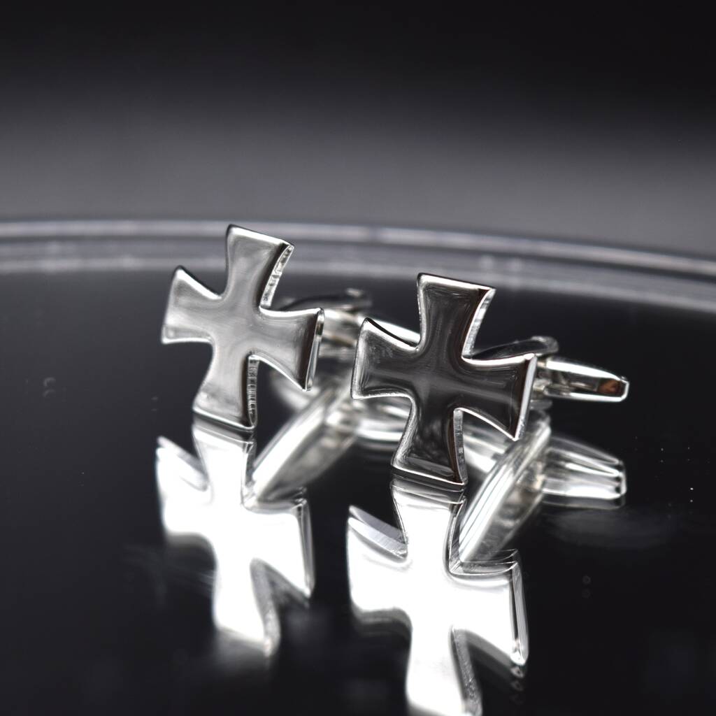 Silver Cross Cufflinks Polished Maltese Design For Men Gift