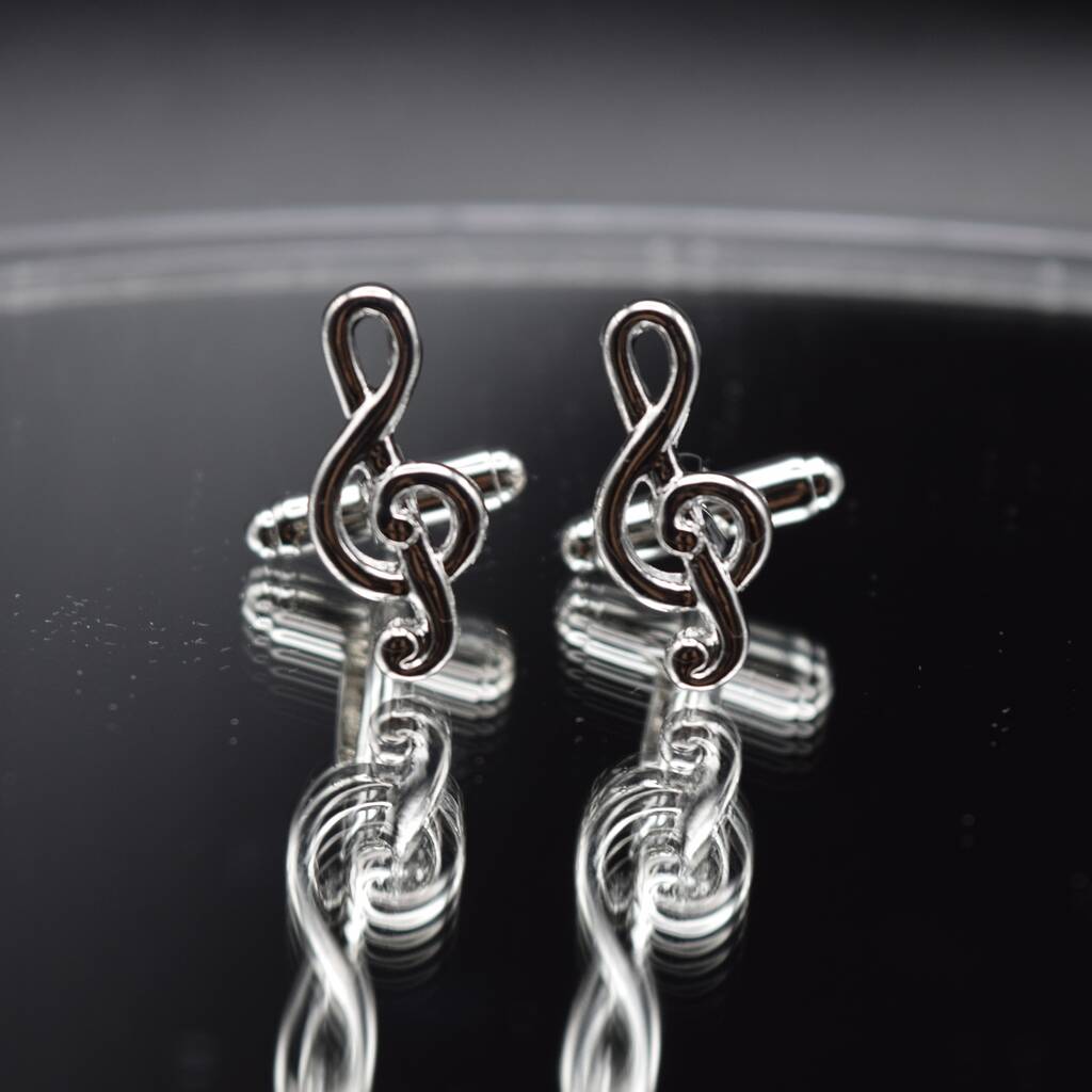 Treble Clef Silver Cufflinks Gift For Musicians 316 L Stainless Steel Music Accessory