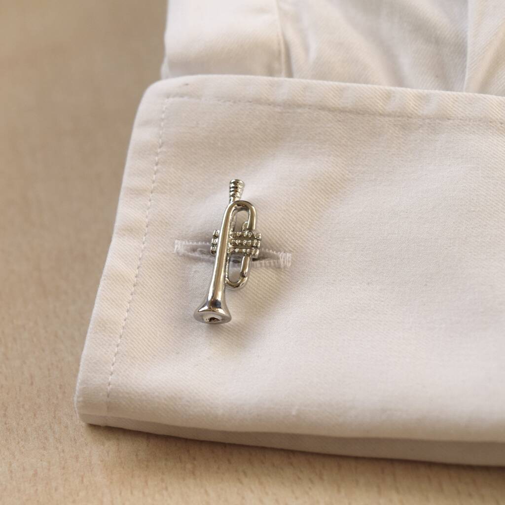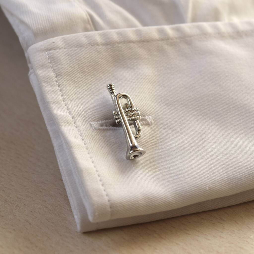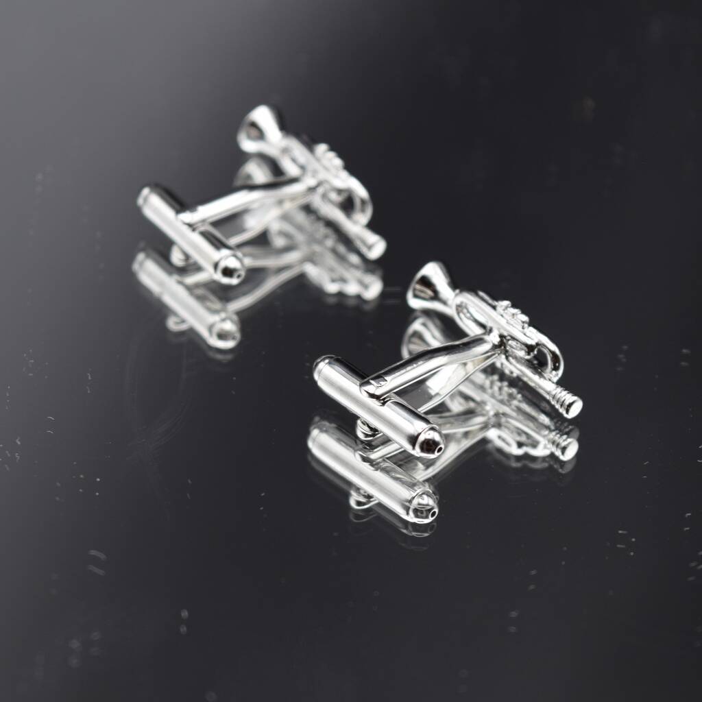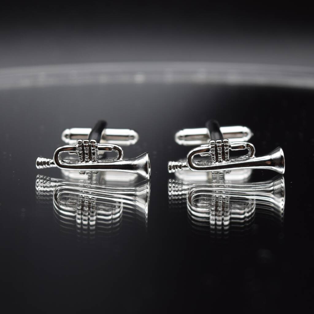 Trumpet Silver Cufflinks Gift For Musicians 316 L Stainless Steel Jazz Accessory