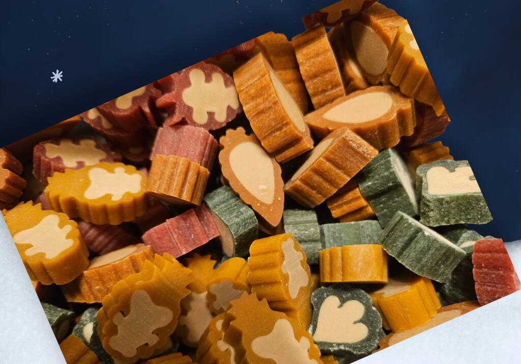 Enjoy a mixed bag of vegan, fruity delights for your puppy!These plant-based chews, bites, and jerky are made with real fruit powders and contain no artificial ingredients, ensuring a natural flavour that dogs will love. Shaped like strawberries and pineapples, broccoli and carrots, and passionfruit jerky, they are both fun and tasty. Each chew has a firm outer texture and a soft, chewy center, making them easy to grip and hold while satisfying natural chewing instincts.