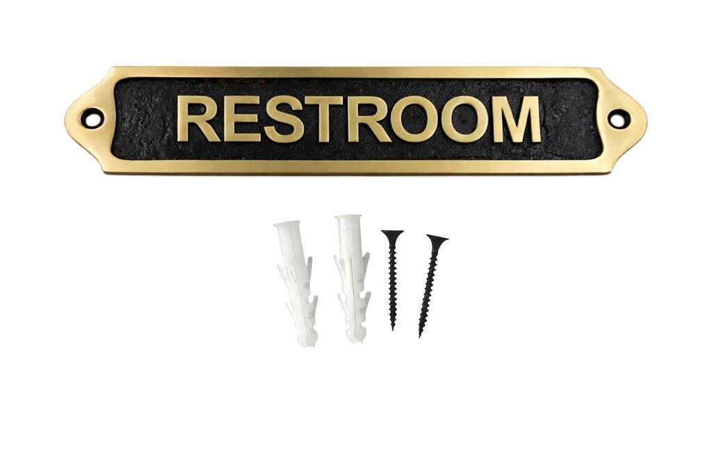 Classic Brass Restroom Door Plaque With Black Finish