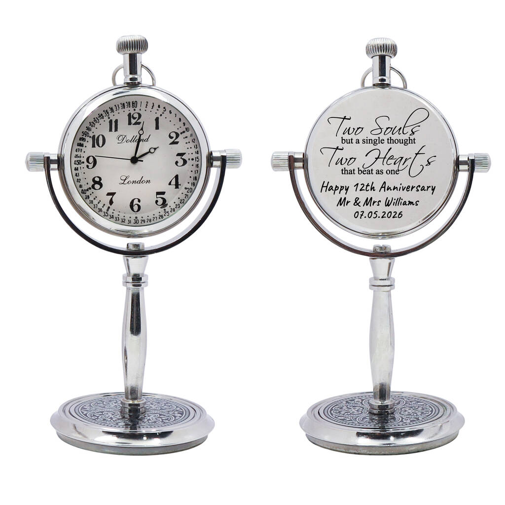 Personalised 12th Anniversary Silver Colour Desk Clock