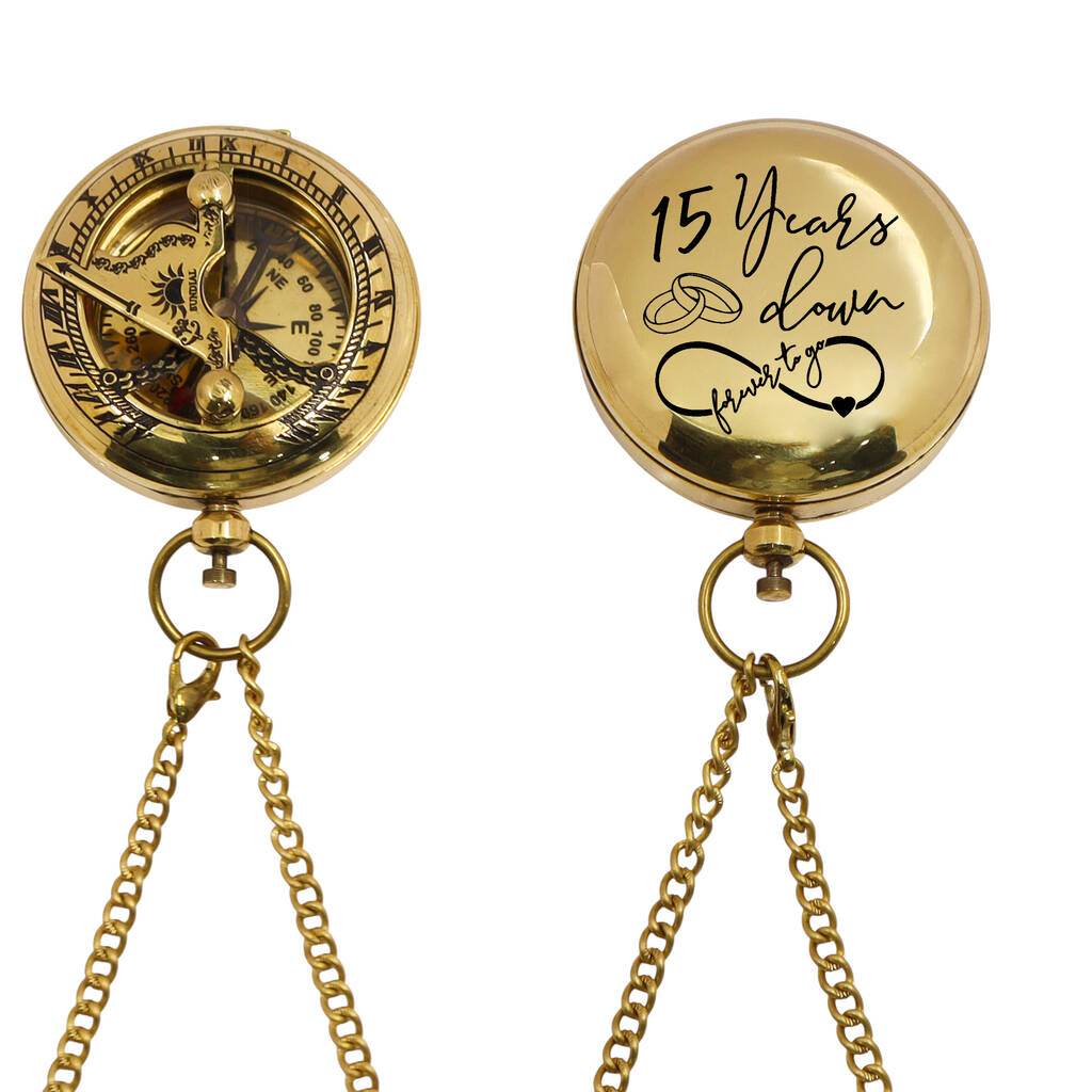 Personalised 15th Anniversary Brass Sundial Compass