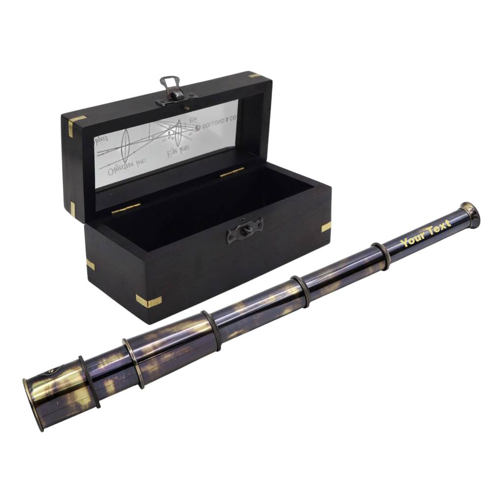 Personalised 17 Inch Gunmetal Telescope With Wood Box