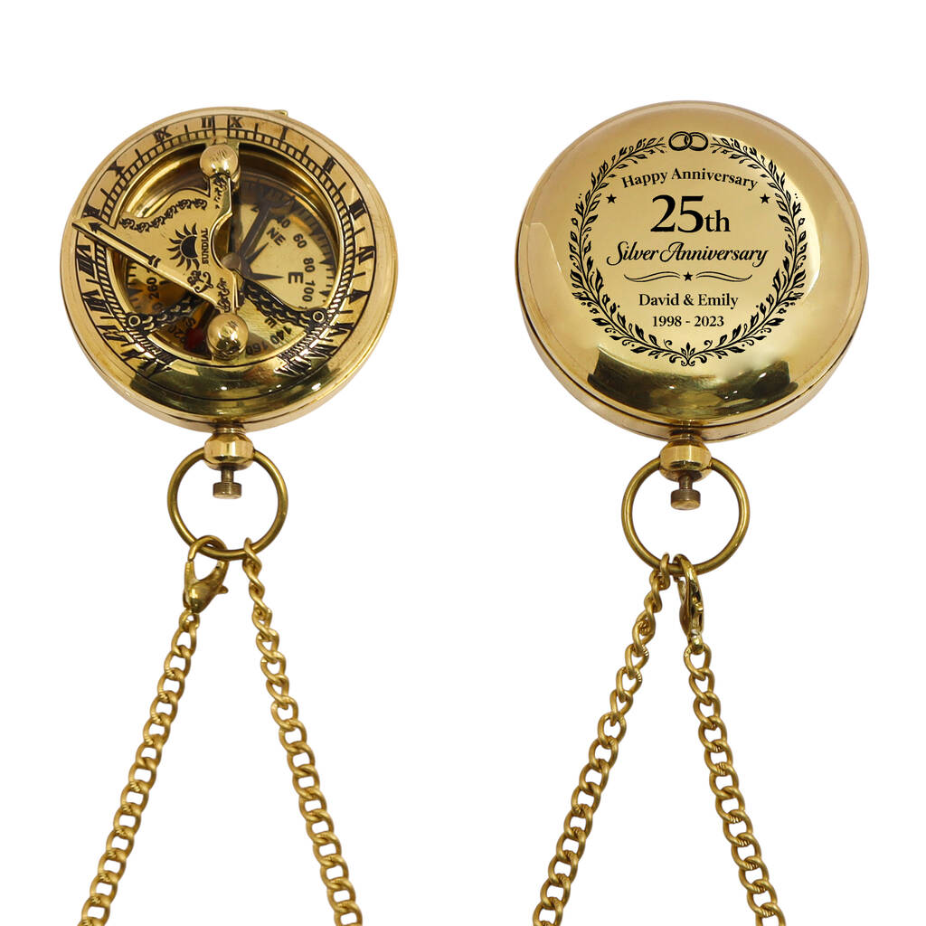 Personalised 25th Anniversary Brass Sundial Compass
