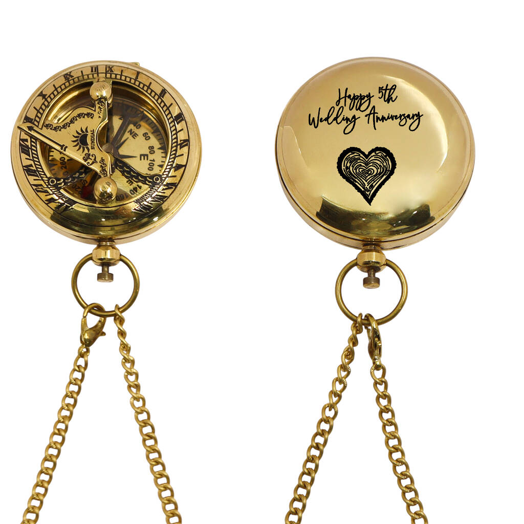 Personalised 5th Anniversary Brass Sundial Compass