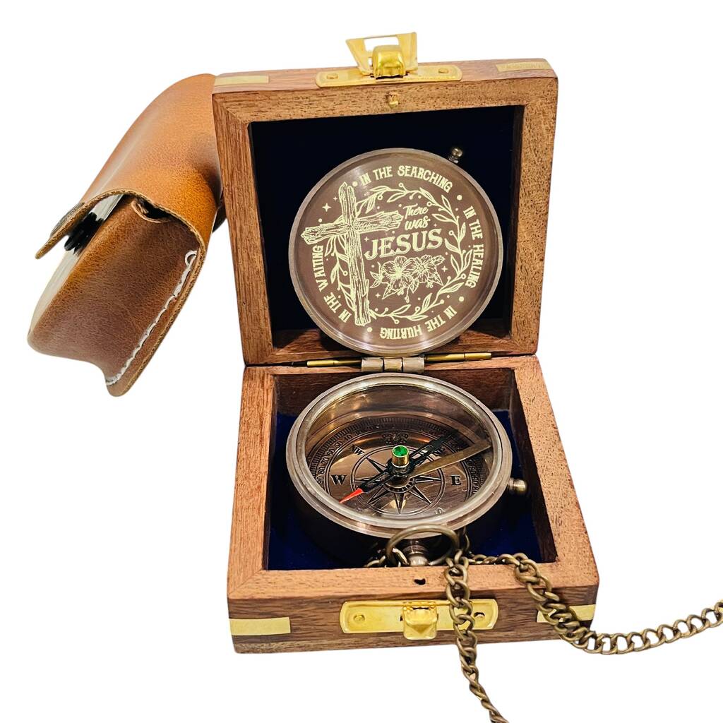 A heartfelt personalised Baptism brass compass in a luxury wooden presentation box — a timeless keepsake symbolising faith, love, and lifelong guidance.Celebrate a special Baptism with this beautifully crafted personalised brass compass, elegantly presented in a wooden gift box. Expertly engraved with a name, date, or meaningful message, it becomes a lasting symbol of faith, guidance, and love. Unlike ordinary gifts, this keepsake combines timeless design with deep spiritual meaning, making it a treasured reminder of a child’s sacred milestone. Perfect for parents, godparents, grandparents, and family friends, it can be displayed as a cherished memento or kept safely in its presentation box for years to come a thoughtful gift designed to be remembered for a lifetime.