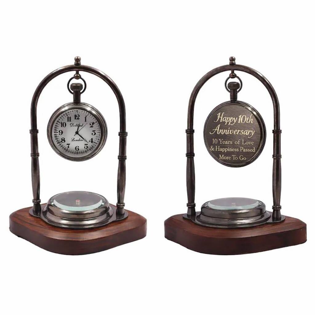 Personalised Bronze 10th Anniversary Desk Clock With Compass